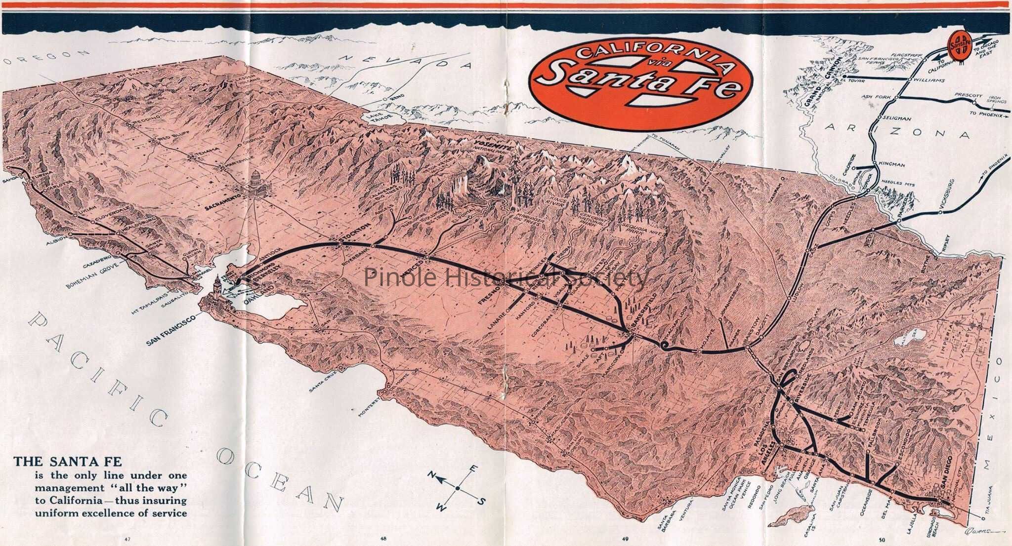 In March 1881, the Atchison, Topeka and Santa Fe Railroad reached Southern California, turned northward, crossed the Tehachapi Mountains, and went into the great San Joaquin Valley. At Stockton, it veered west toward Oakland and San Francisco, dealing with swampland, Delta waterways, and the hills and valleys from Martinez to Pinole on its way to Point Richmond. It provided freight and passenger service, connecting to San Francisco by barge.Copyright