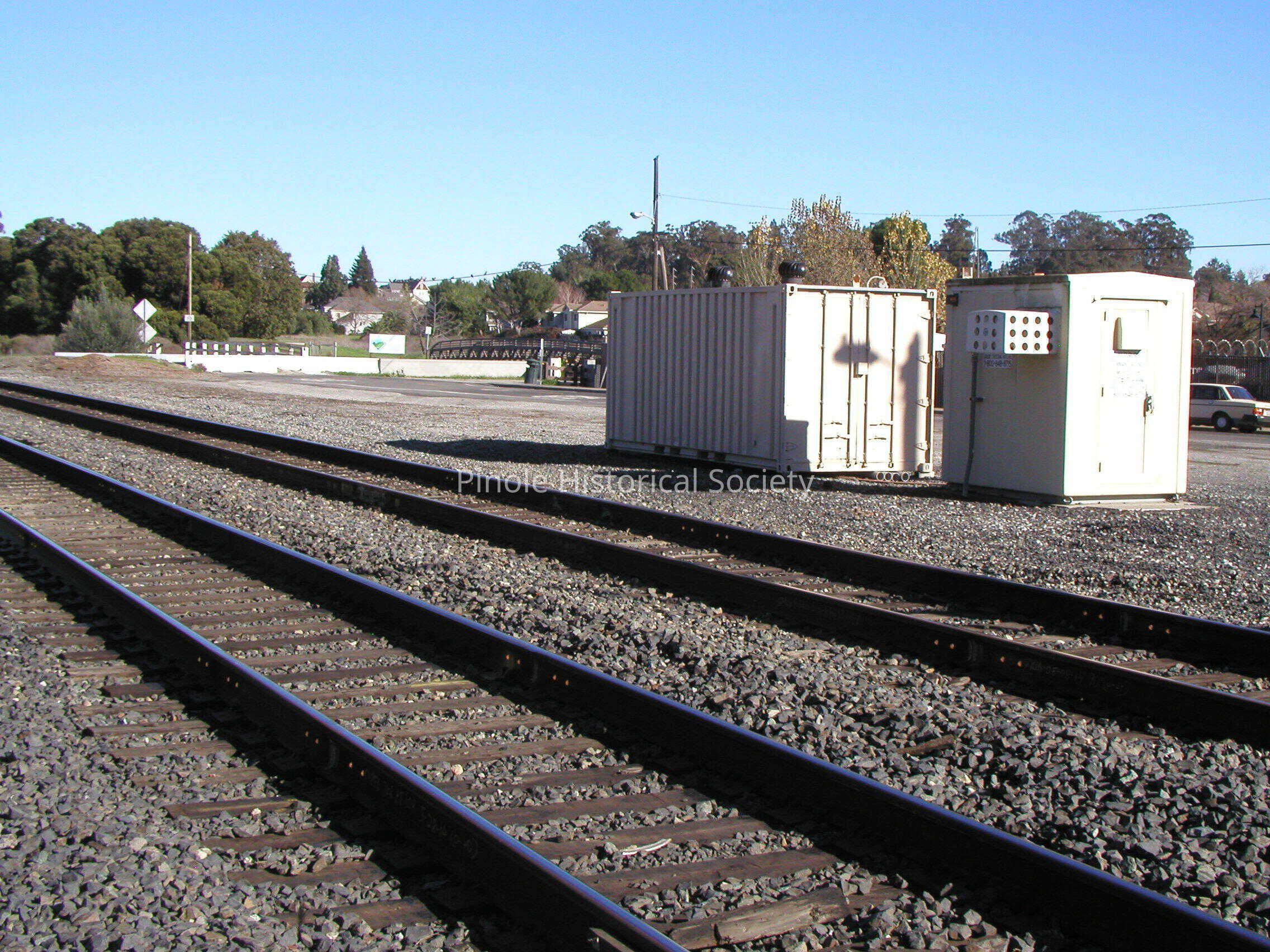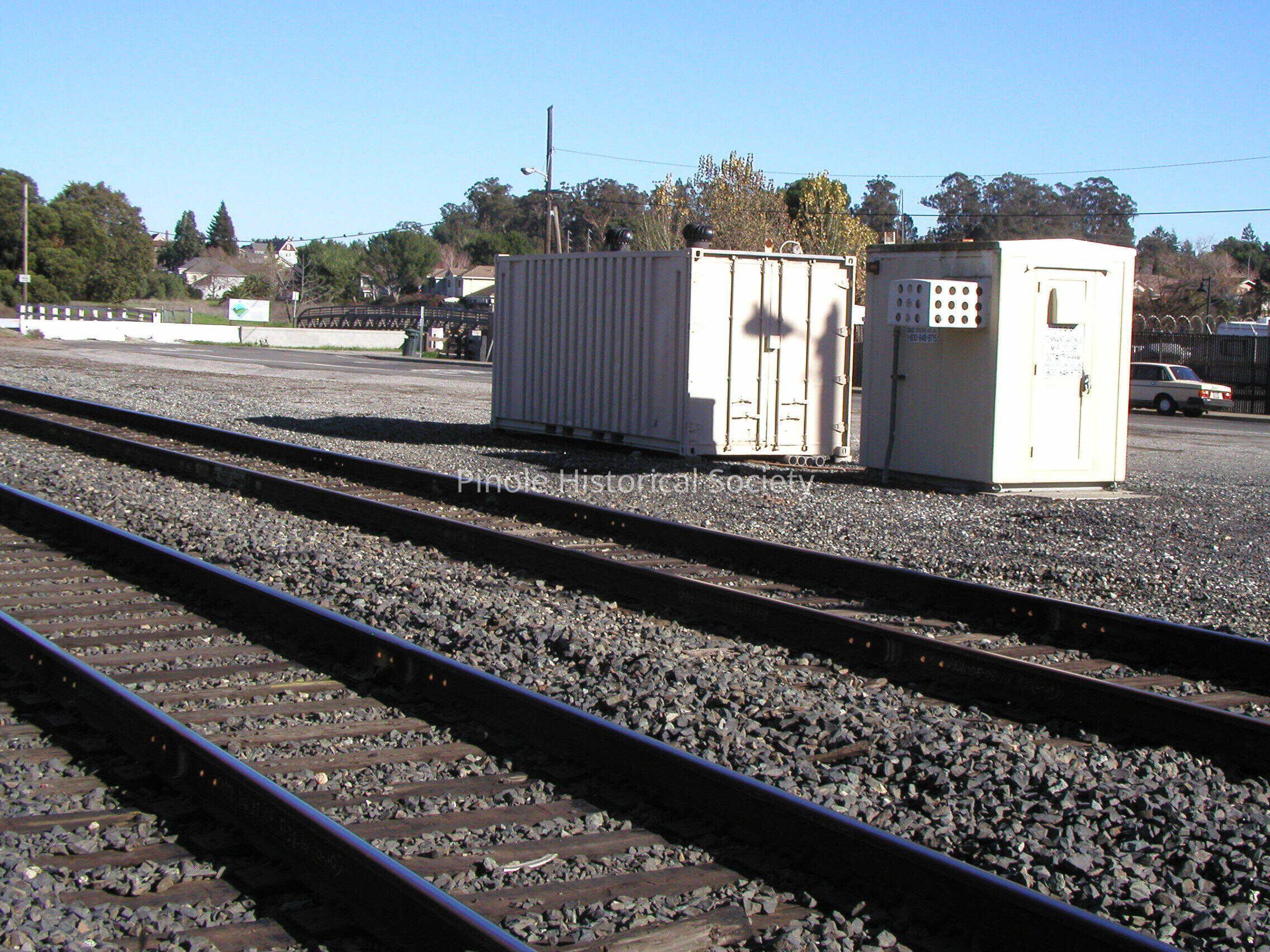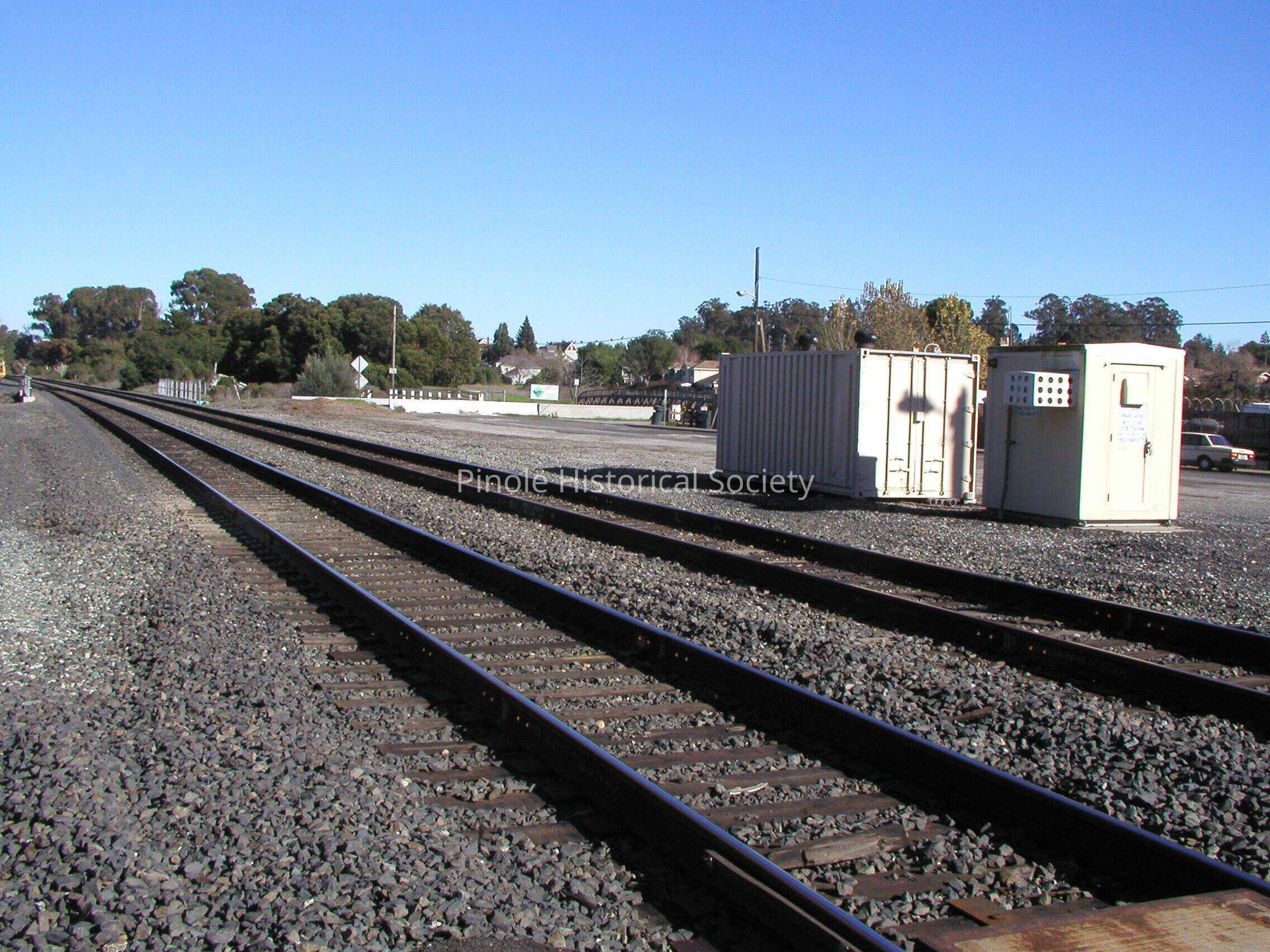 Southern Pacific Depot: The Southern Pacific Railroad (formerly the Northern Railway and now Union Pacific) came to the Pinole waterfront in the late 1870s. With the railroad came a Pinole depot at the end of Tennent Avenue, across from the Bernardo Fernandez home. Until 1910, the depot served as Pinole’s post office. In 1889, Edward M. Downer came to Pinole at age 19 and served as the first official postmaster and the Southern Pacific’s transfer agent and telegrapher. Southern Pacific depots were always painted yellow and had a palm tree planted beside them. This depot, by the shores of San Pablo Bay, was demolished in 1958.Copyright