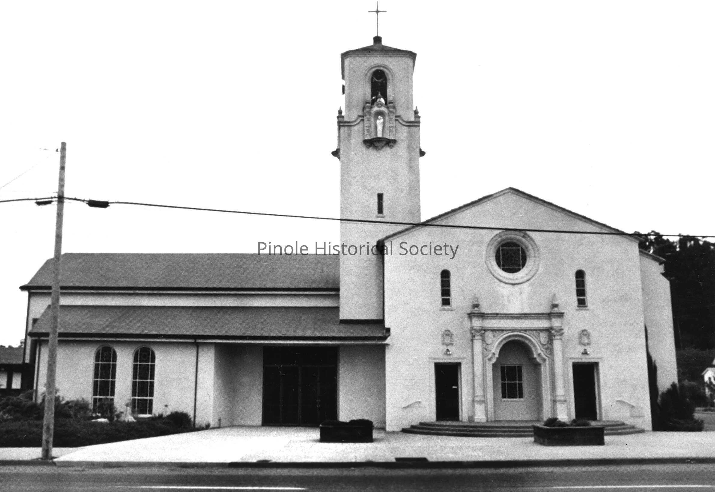 The original, Gothic revival-style wooden Catholic church was built in 1881 on land donated by Samuel and Raphaela Tennent. The buzzing of bees that made their homes in the walls bothered parishioners; when the church was torn down and a church rectory was built on that site, thirty pounds of honey were retrieved from the wood. A new, mission-style church opened in 1951. Many of the stained-glass windows of St. Joseph Church are historical markers to the Portuguese influence in Pinole. The colorful “in memoriams” bear the names of Fernandez, Faria, Marcos, and Costa, as well as one gift of glass donated by the Portuguese organizations of Pinole.Copyright