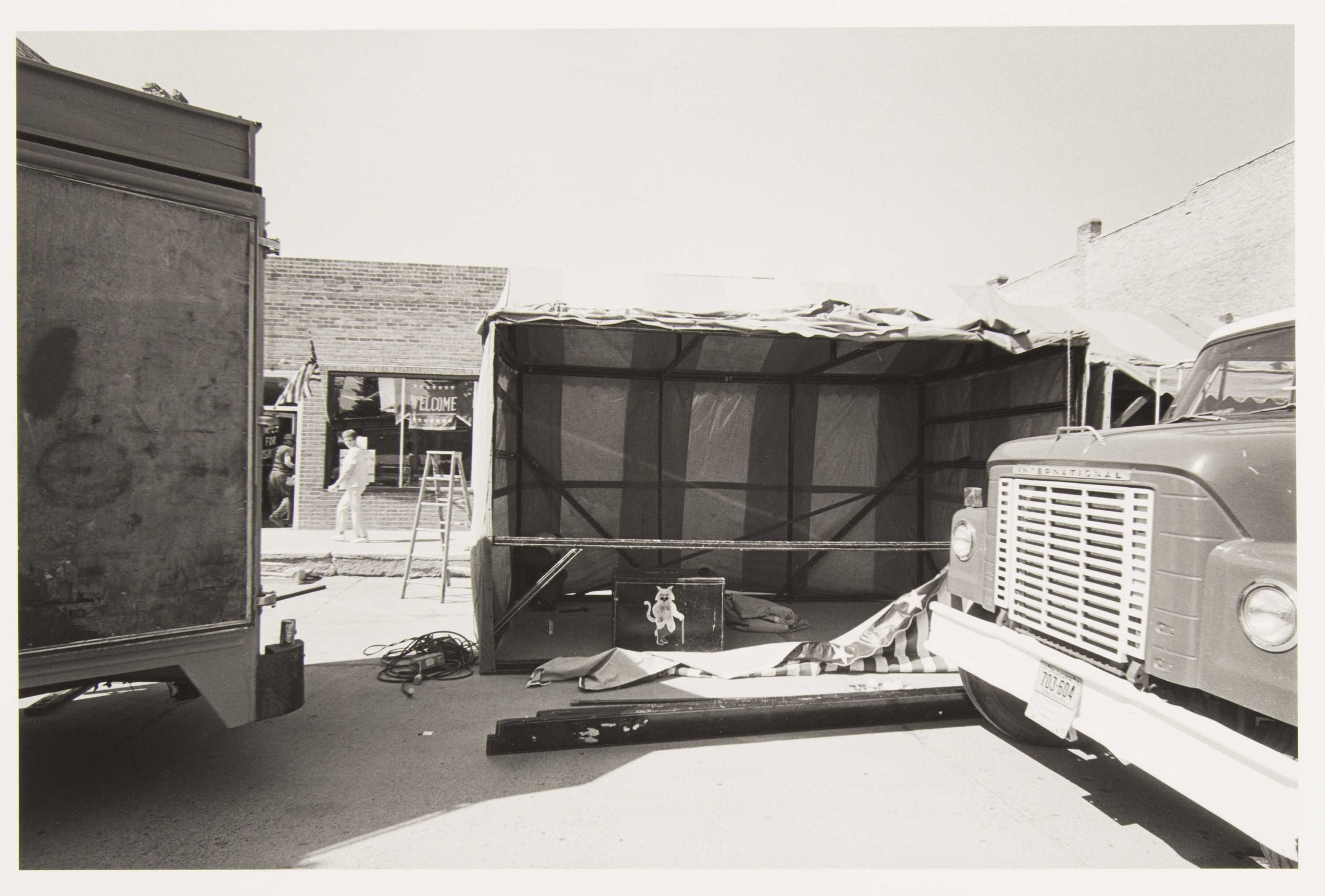 Black and White, Building, Car, City, Man, Place, Rural, United StatesDescription