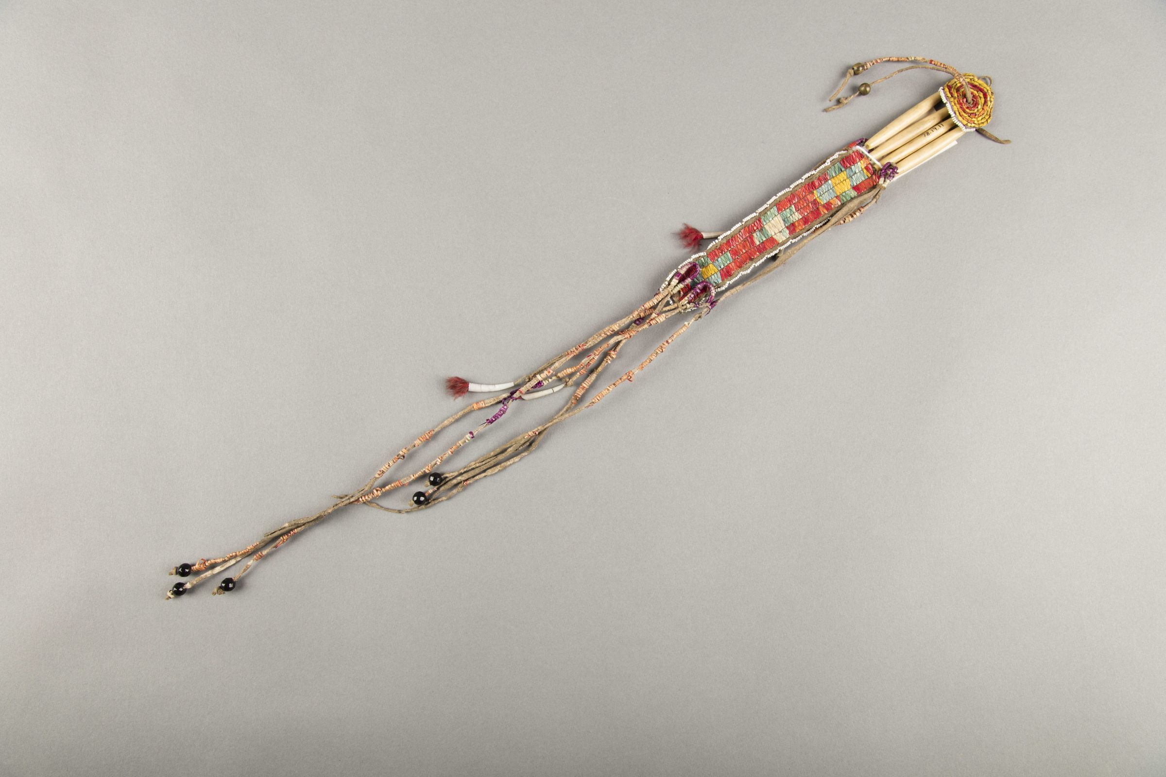 Native American Collection, United States, Quillwork, leather, Bone, Beadwork, Feathers, Geometric designDescription