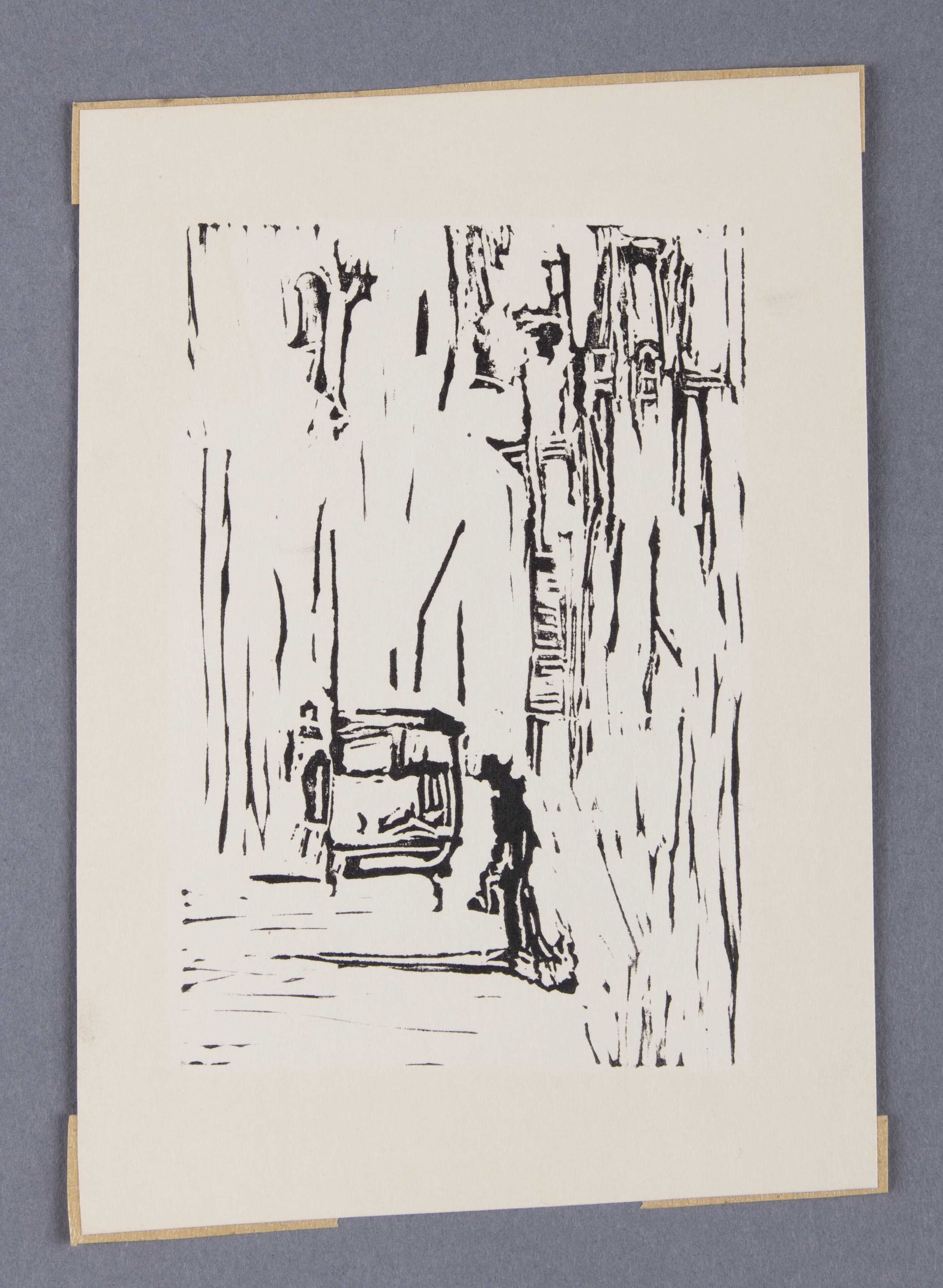 Black and White, Car, Linoleum Cut, ManDescription