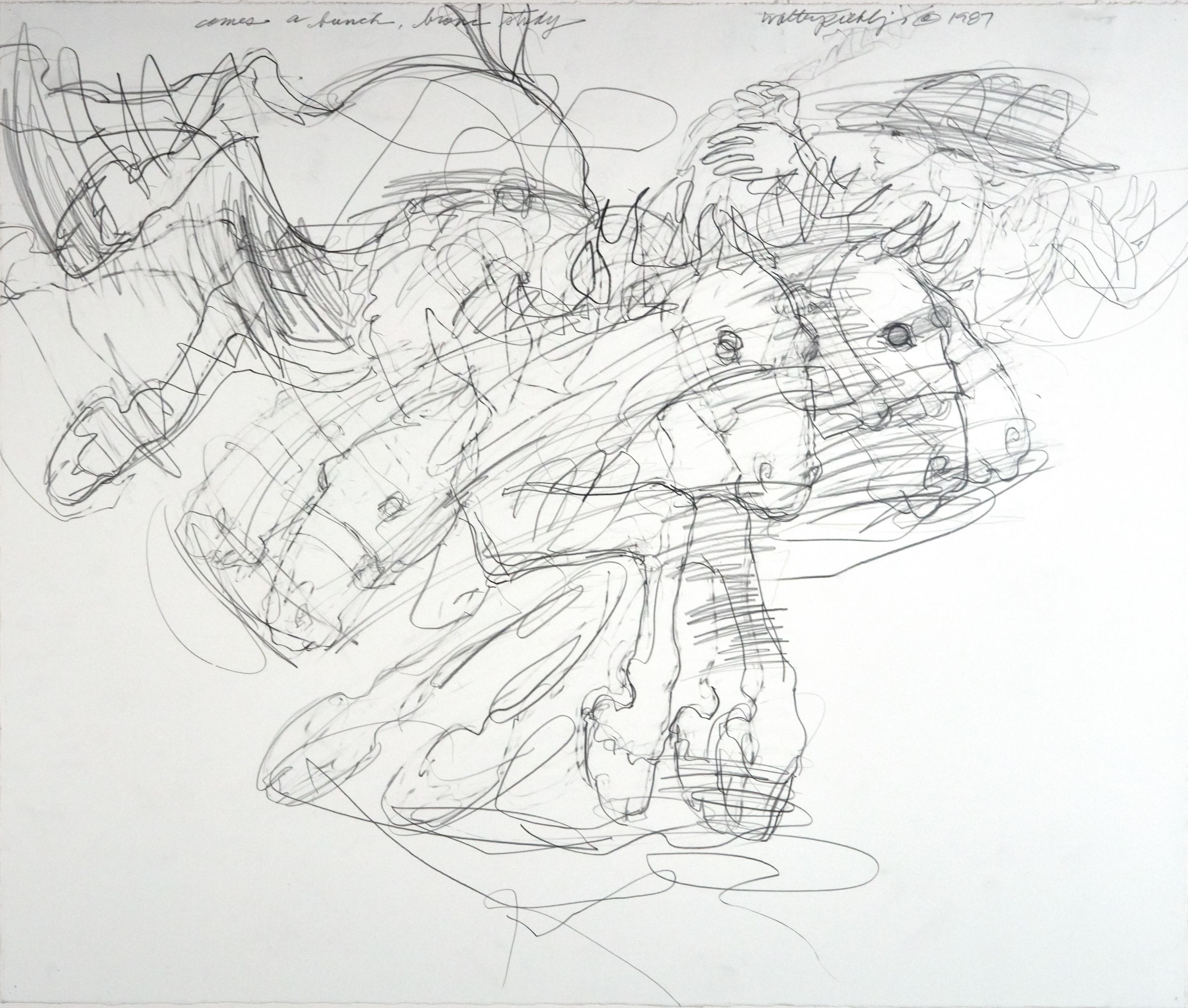 Graphite. Gestural drawing of a man riding a horse.Made/Created
