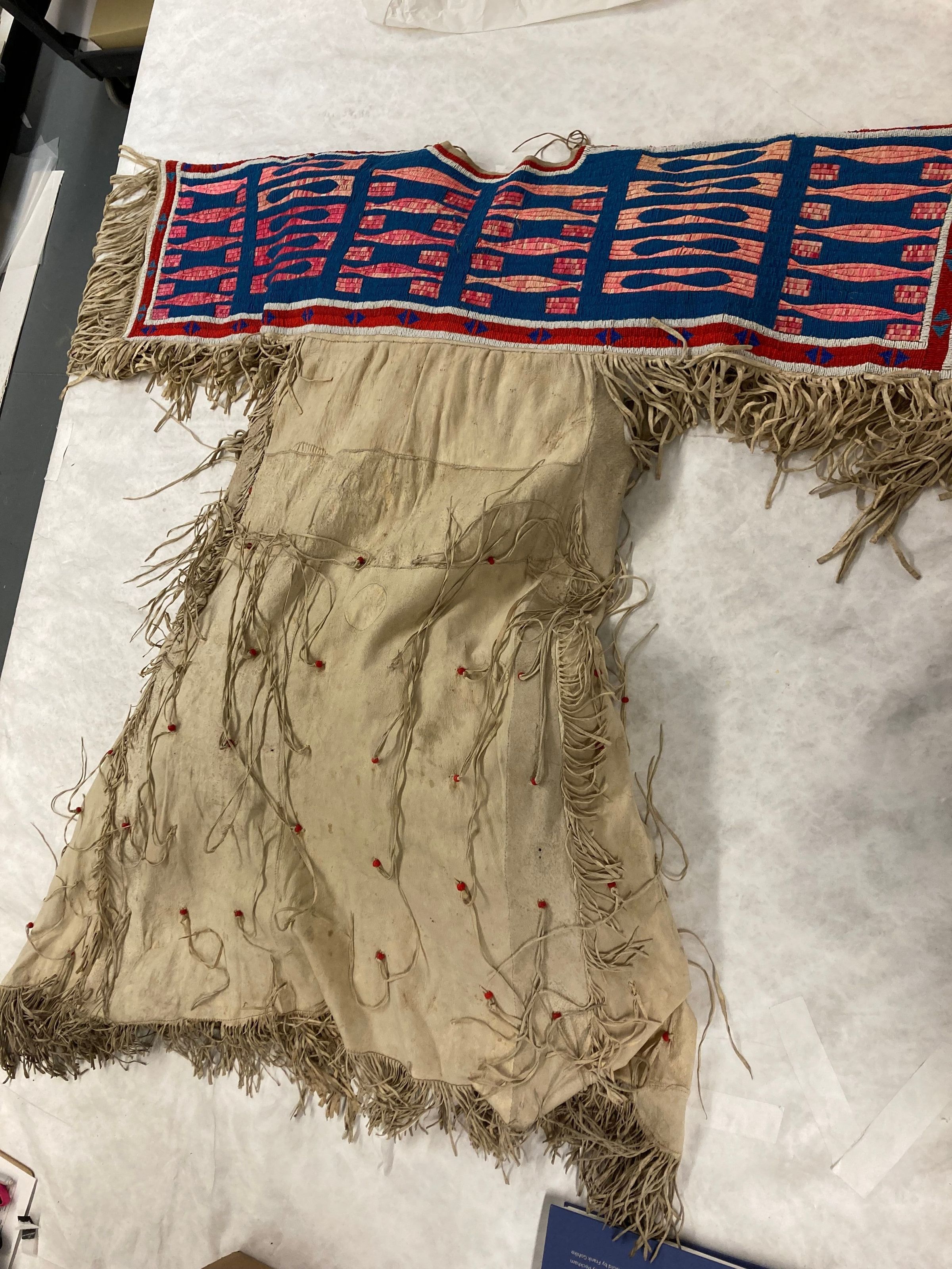 Medium: decorated clothing; stitched beadwork; quillwork on leather