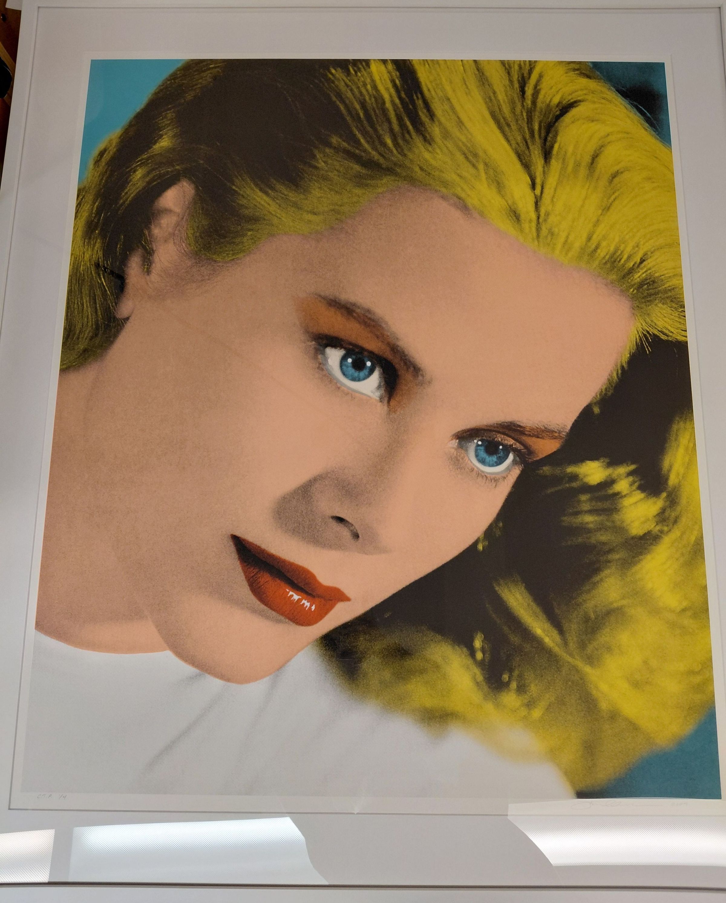SMA-G-106. three quarters view of woman's face, looking to right side of image. Blonde, light blue eyes, red lips. "All digital inkjet process printing."Artwork Details
