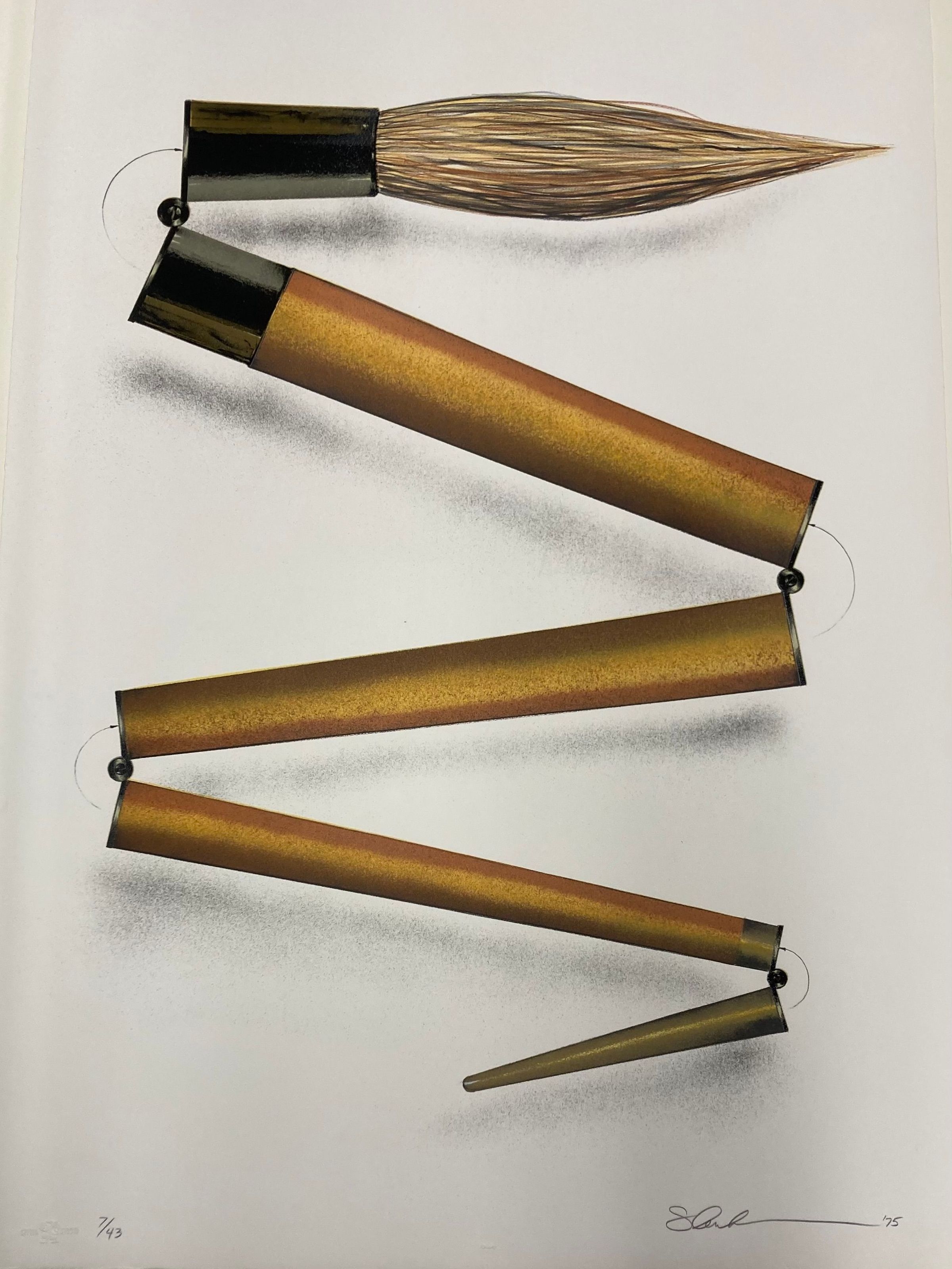 SMA-0008. Lithograph of brush with hinges along the handle. It is folded in a zigzag pattern.Made/Created