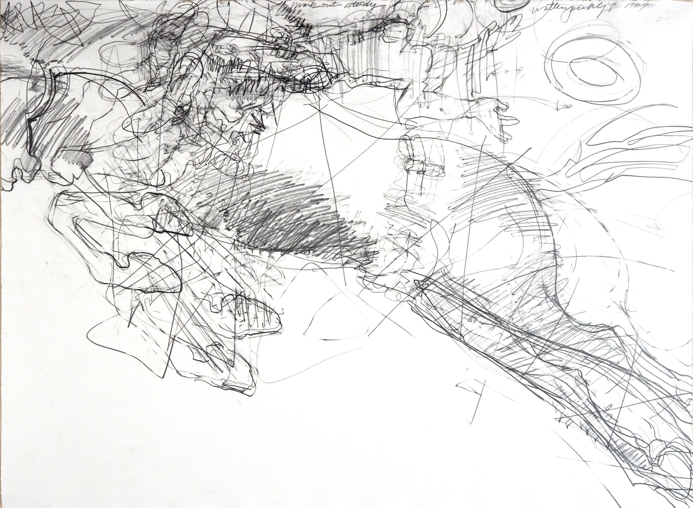 Graphite. Gestural drawing of someone riding a horse.Made/Created