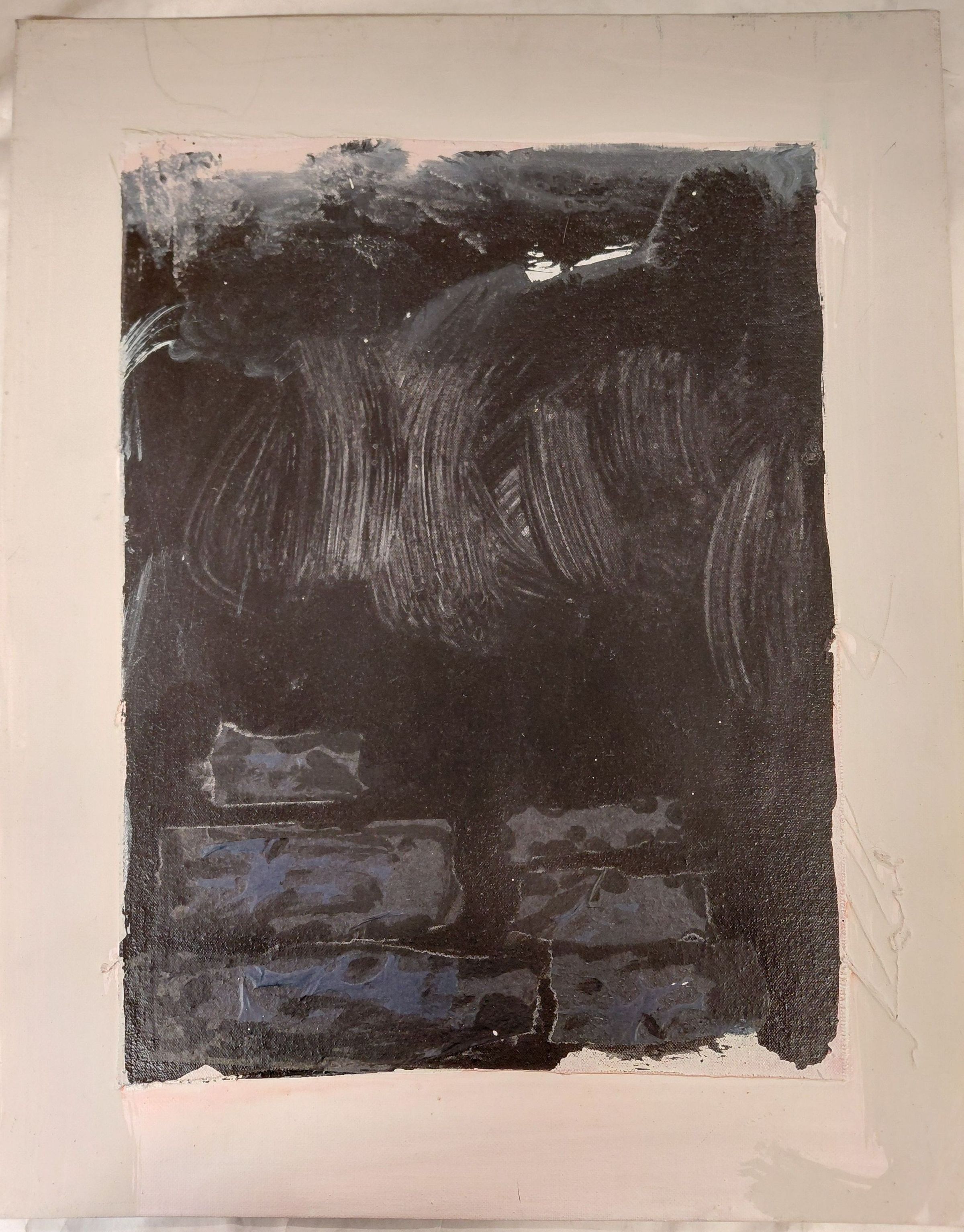 Black rectangle, blue-ish rectangles in foreground. Pink around edges.Artwork Details