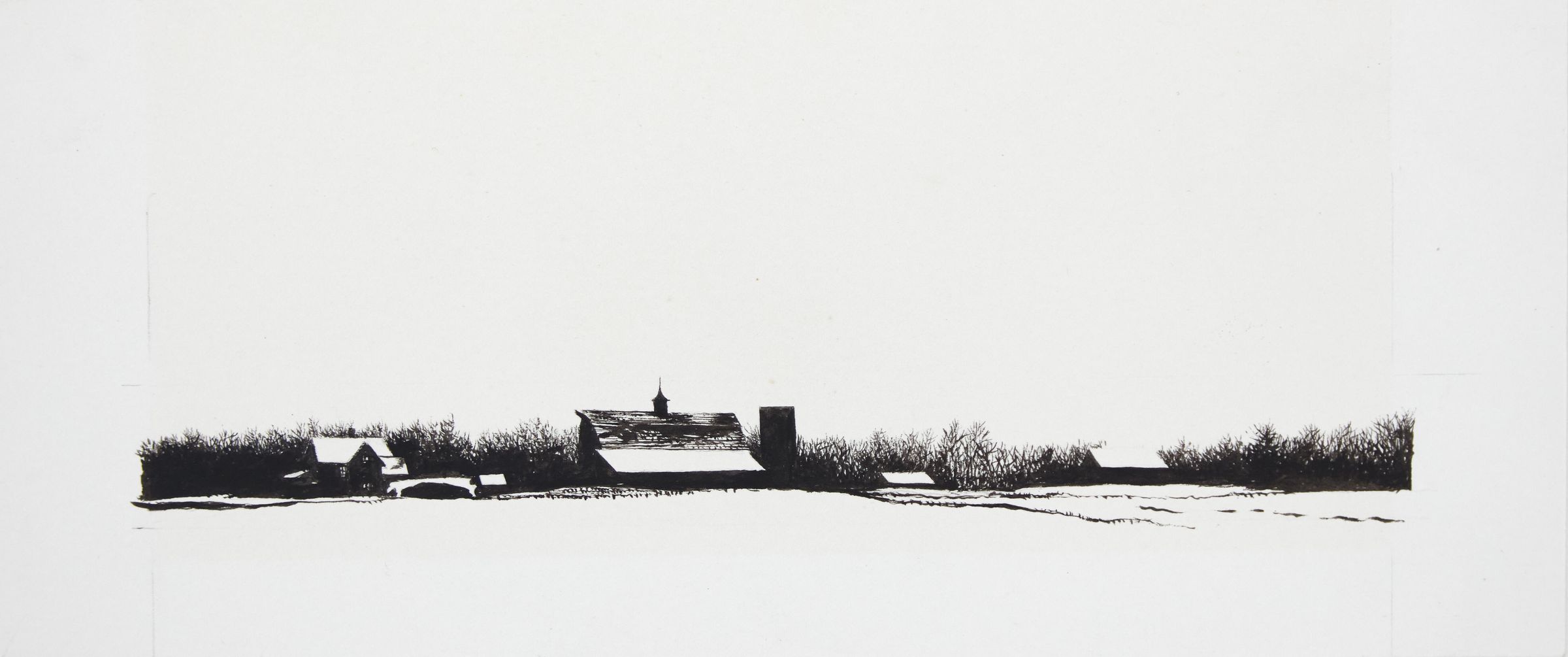 Black and White, Building, Ink, Landscape, RuralDescription