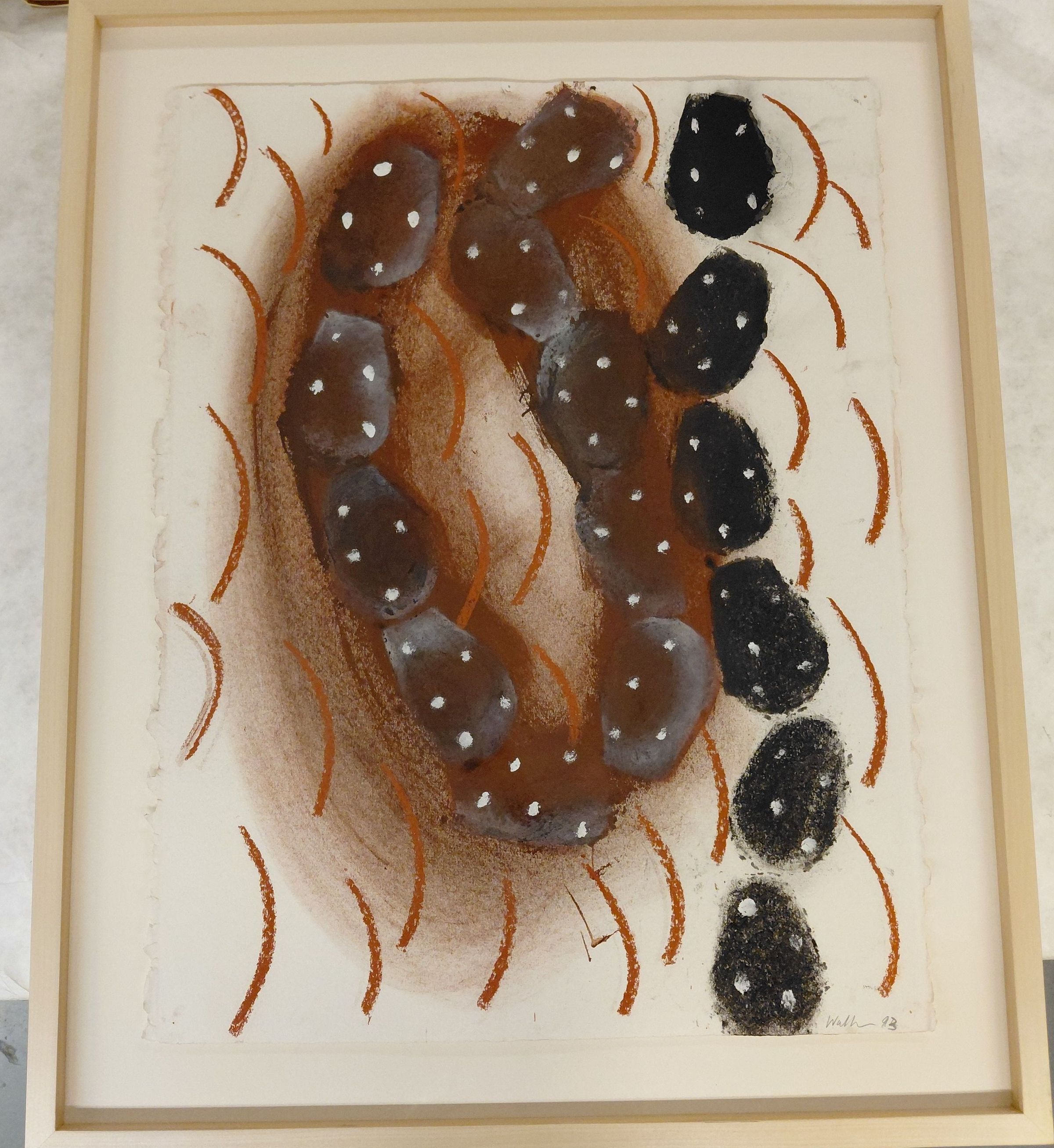 Abstract, circular, organic forms. Black and red/brown colors.Artwork Details