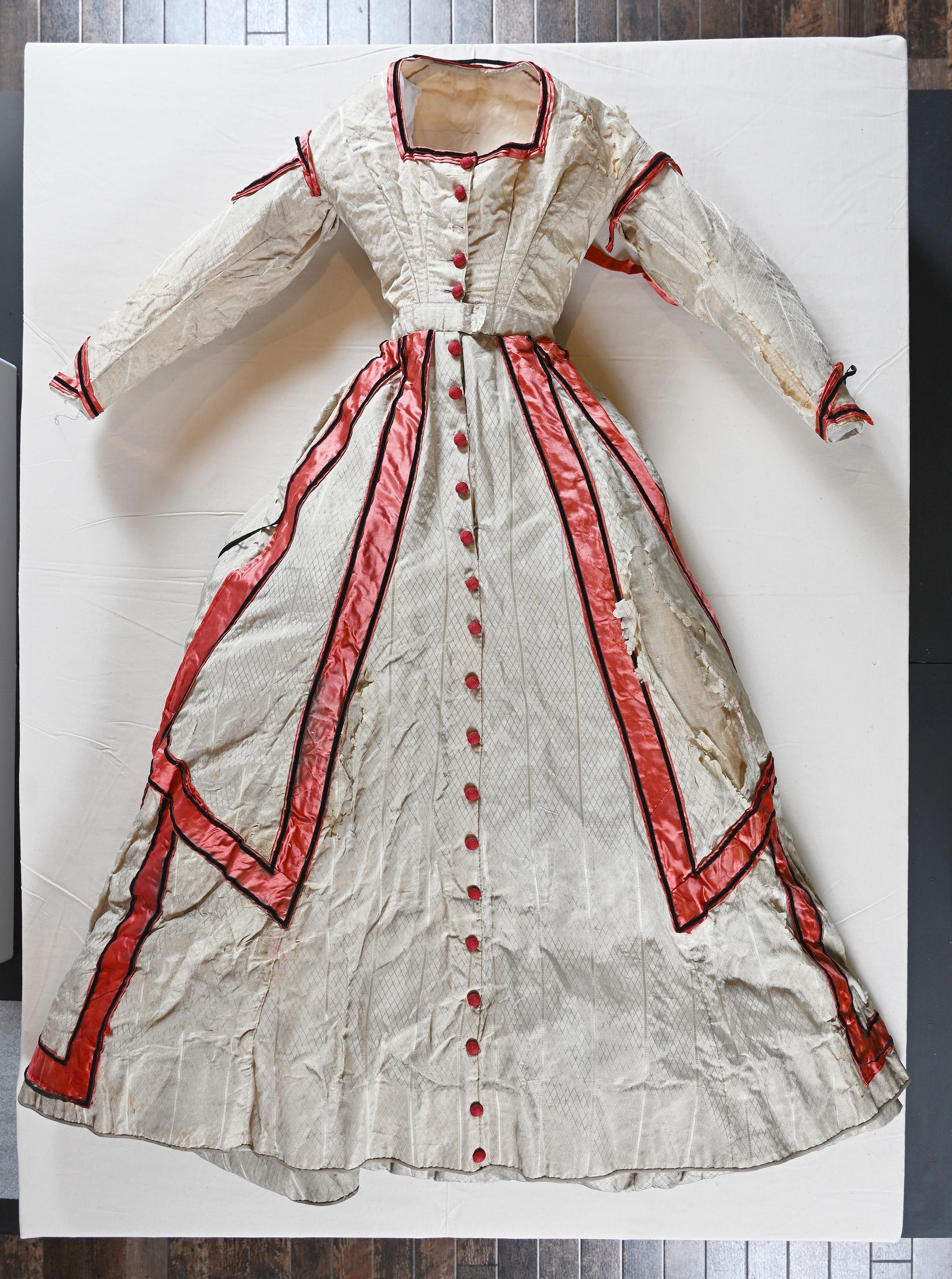 If the stories are true, this dress witnessed President Abraham Lincoln’s Second Inaugural Ball on March 4, 1865, in Washington, D.C. An engraved invitation in the museum's collection is addressed to “Miss Rose Howe.” It has been long assumed that this refers to Frances’ and Rose’s mother, Rose Bailly Howe, and that, according to the story, together the three women attended the ball, with fourteen-year-old Frances wearing this dress. It isn’t clear why the family was invited, but there is speculation that it was actually the 22-year-old daughter Rose, a distinguished early graduate of Saint Mary-of-the-Woods Academy in 1860, whose honor was requested.