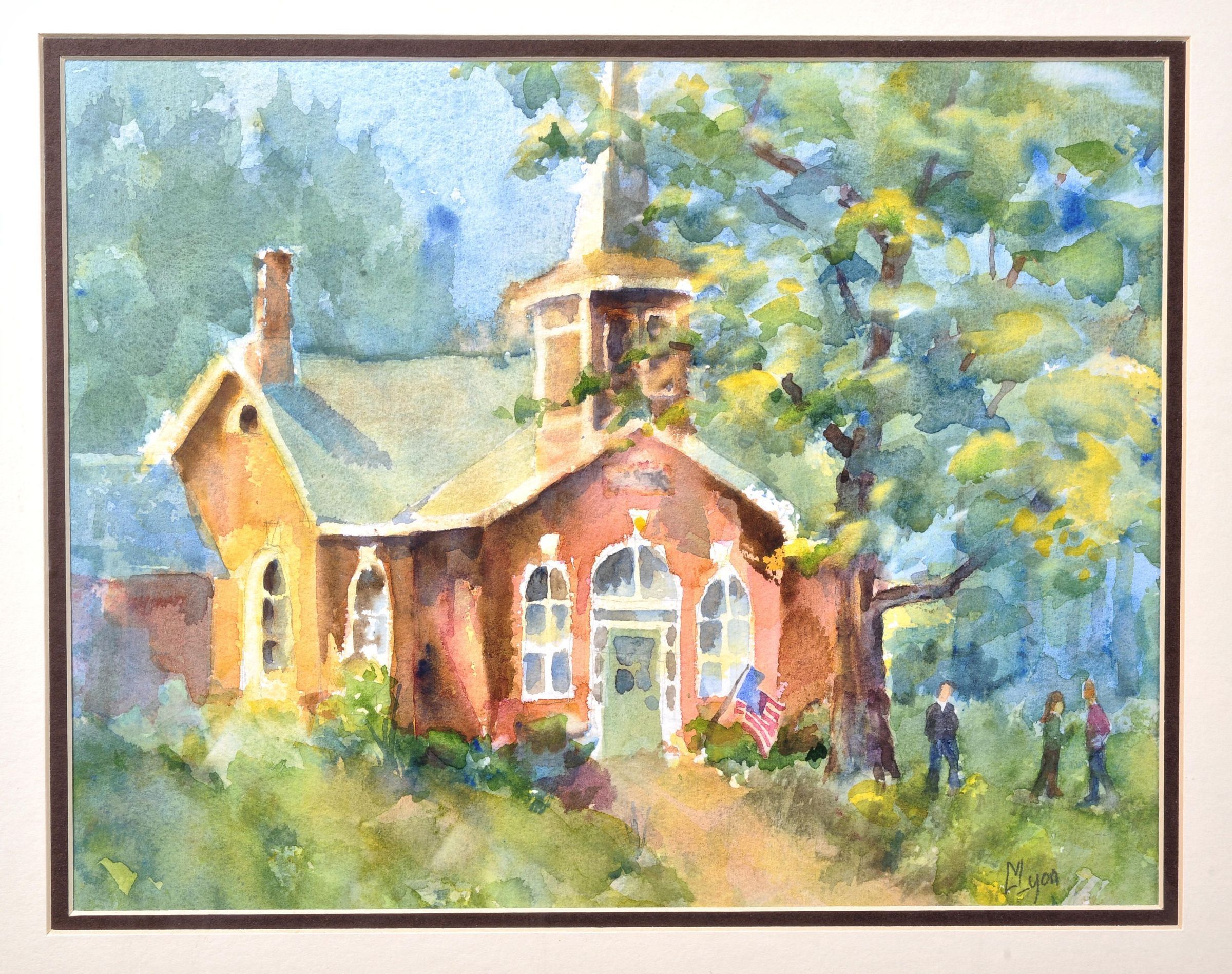This painting by L. Lyon depicts the Schoolhouse Shop in Furnessville, Westchester Township.Artwork Details