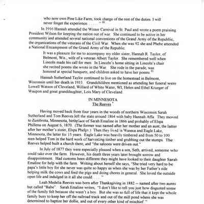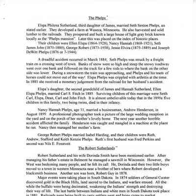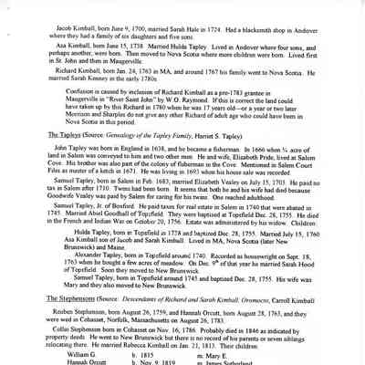 A family history in New England, New Brunswick, Wisconsin, and Minnesota. The family names mentioned are Hoods, Tapleys, Kimballs, Kennedys, Stephensons, Sutherlands, Lincolns, Taylors, Smiths, Reeves, Ridleys, Phelps, and Fullers.Created By