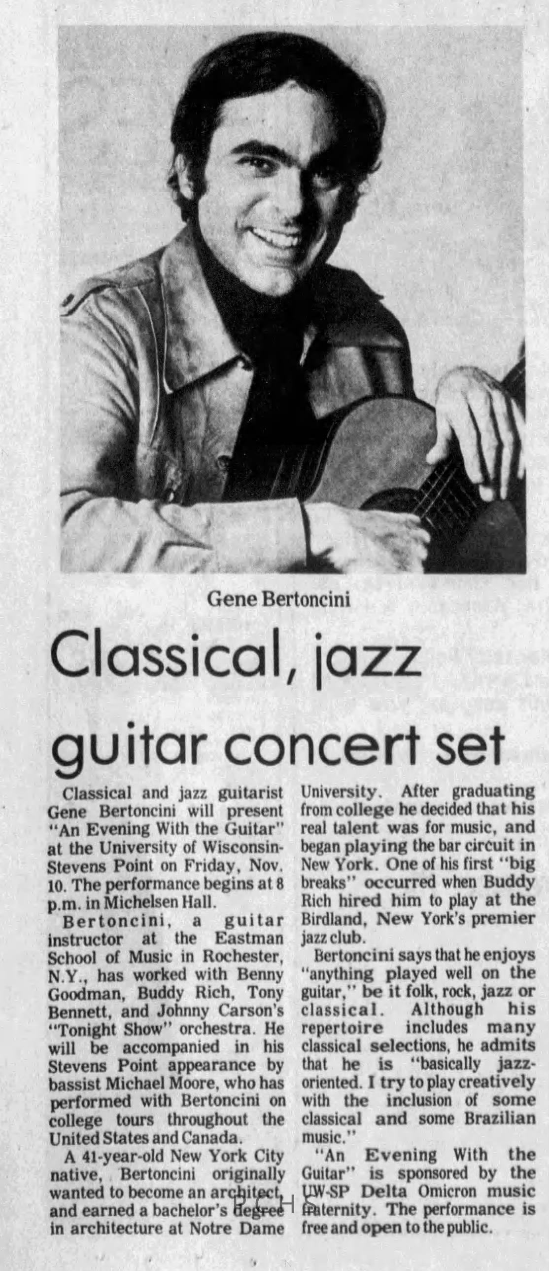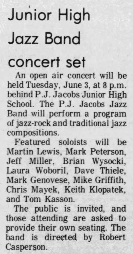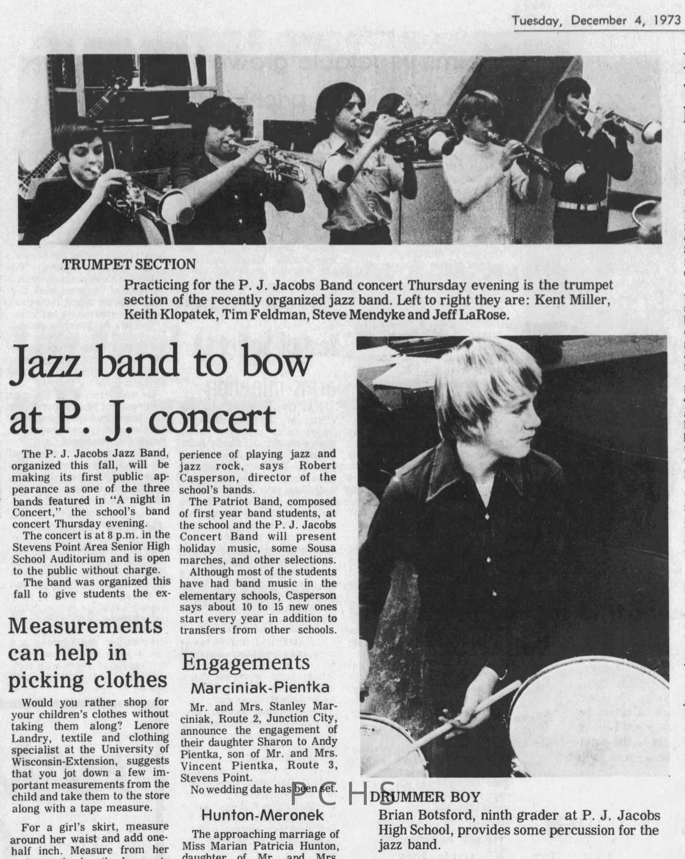 Newspaper clippings from Portage County newspapers. These clippings show jazz musicians, bands, events, school organizations, and traveling shows from 1971-1980. Some highlighted topics are Uncalled Four, Blue Top, James Duggan, Stevens Point State University jazz band, Michelsen hall, Gary Neustadter, Don Chesebro, Chuck Berger, Holiday Inn, Barbershoppers, Carman Lane, Jack Edgerton, Dick Manthe, Dave Peplinski, Dennis Siewert, Genya Raven, Pete Fountain, Janice Peppers Carmichael, Graham Lane Music, Galleon Lounge, Bob Worth, Wally Ives, John Russo, The Jazz Singer, Al Jolson, Dave Brubeck, Gary Neustadter, PJ Jacobs, Arnold Mossler, Uncalled Four plus two, SPASH orchestra and wind ensemble, Maynard Ferguson, Preservation Hall, Edison's Memory, Wishbone Ash, Monty Alexander, Poor Henry's, Johnny Russo, Robert J Casperson, Jazz 6, Oratorio Chorus, Don Greene Trio, Matt Lewis, Buddy Rich, bandshell, Stevens Point jazz ensemble, Jean-Luc Ponty, Rich Pinnell, Terry Kawleski, Stevens Point Catholic Schools, Steve Zenz, Woody Herman, Mark Peterson, Gene Bertoncini, Pacelli jazz band, Ken Camlek, Lawrence University jazz ensemble, Ben Franklin Junior High School bands, Hi Fi Forum, Brian Martz, McComb and Hurrish.Created By