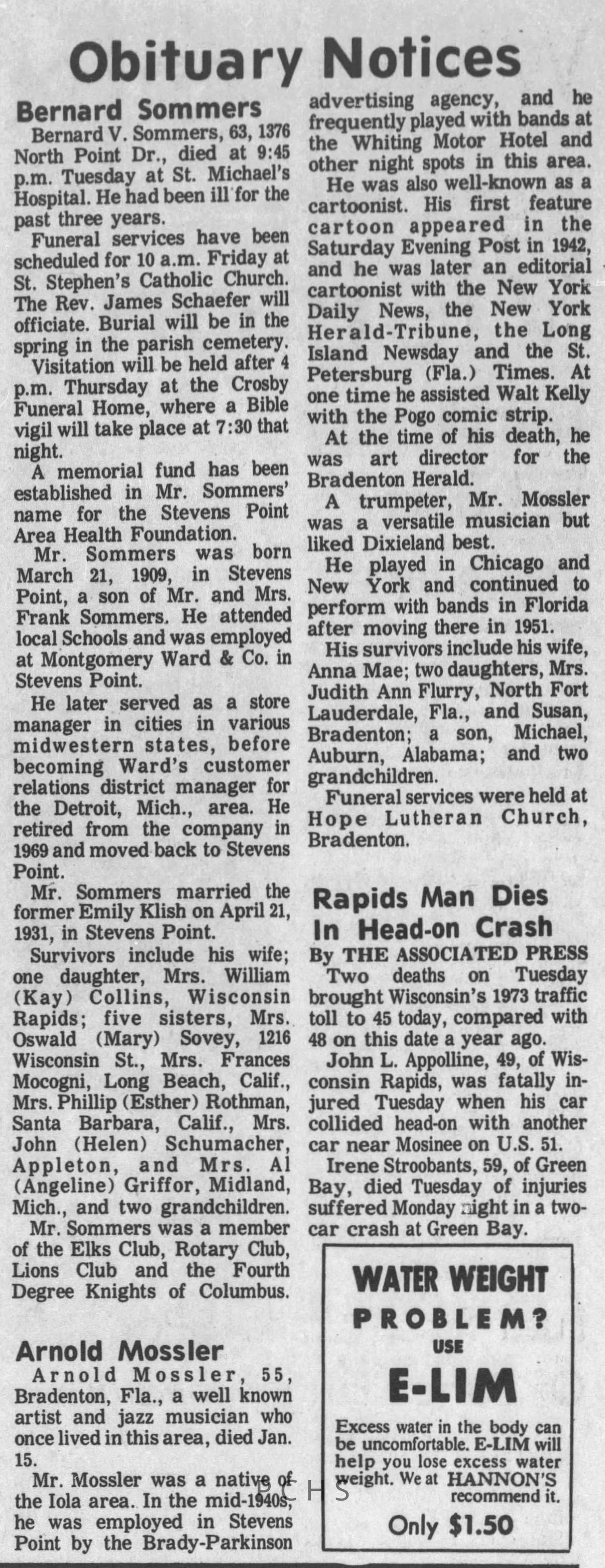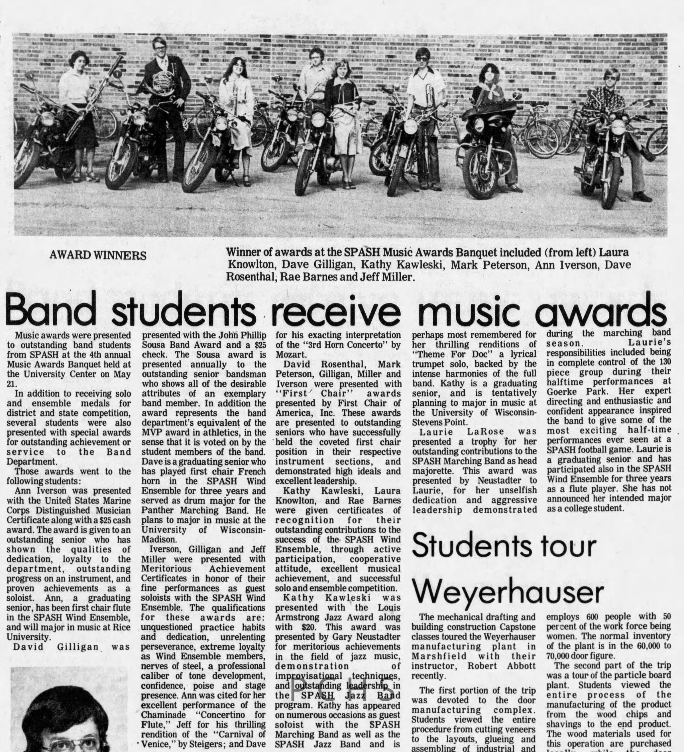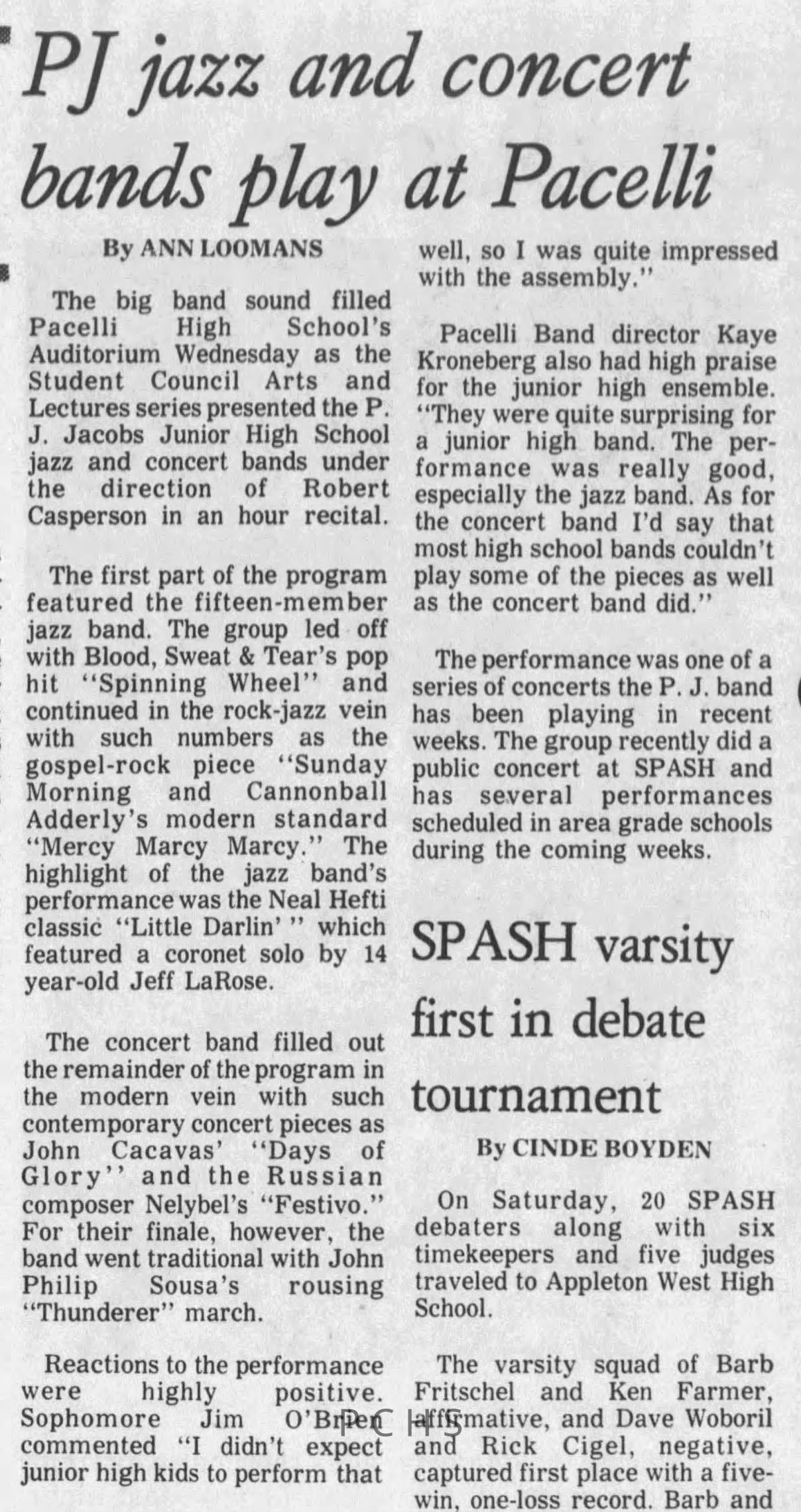 Newspaper clippings from Portage County newspapers. These clippings show jazz musicians, bands, events, school organizations, and traveling shows from 1971-1980. Some highlighted topics are Uncalled Four, Blue Top, James Duggan, Stevens Point State University jazz band, Michelsen hall, Gary Neustadter, Don Chesebro, Chuck Berger, Holiday Inn, Barbershoppers, Carman Lane, Jack Edgerton, Dick Manthe, Dave Peplinski, Dennis Siewert, Genya Raven, Pete Fountain, Janice Peppers Carmichael, Graham Lane Music, Galleon Lounge, Bob Worth, Wally Ives, John Russo, The Jazz Singer, Al Jolson, Dave Brubeck, Gary Neustadter, PJ Jacobs, Arnold Mossler, Uncalled Four plus two, SPASH orchestra and wind ensemble, Maynard Ferguson, Preservation Hall, Edison's Memory, Wishbone Ash, Monty Alexander, Poor Henry's, Johnny Russo, Robert J Casperson, Jazz 6, Oratorio Chorus, Don Greene Trio, Matt Lewis, Buddy Rich, bandshell, Stevens Point jazz ensemble, Jean-Luc Ponty, Rich Pinnell, Terry Kawleski, Stevens Point Catholic Schools, Steve Zenz, Woody Herman, Mark Peterson, Gene Bertoncini, Pacelli jazz band, Ken Camlek, Lawrence University jazz ensemble, Ben Franklin Junior High School bands, Hi Fi Forum, Brian Martz, McComb and Hurrish.Created By