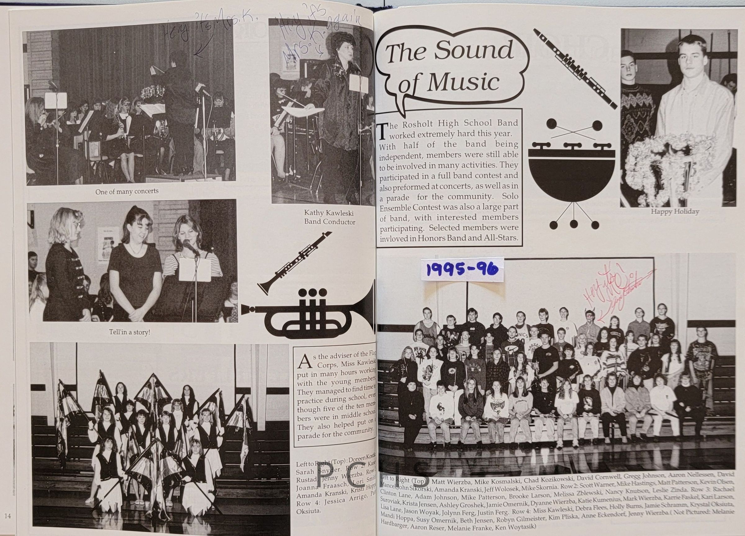Photos and documents show highlights and history from the Rosholt school music program. These were taken from The Hornet yearbook.Created By