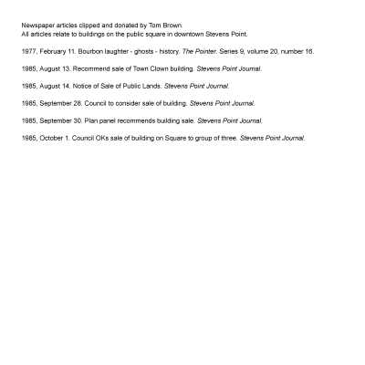 This collection of documents relates to the public square in downtown Stevens Point and the attempts to have buildings there listed on the National Register of Historic Places.Collection