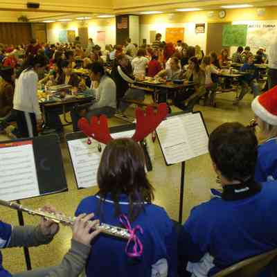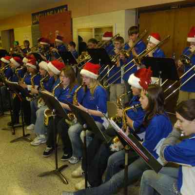 Images depict: the Ben Franklin Jazz band playing at a school cafeteria.Photograph Details
