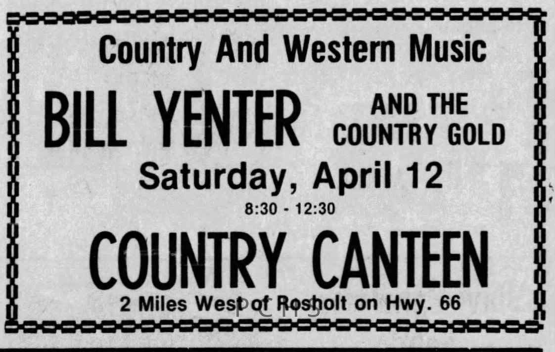 Newspaper clippings and photos showing Country Western star Billy Yenter and his band Country Gold.Created By