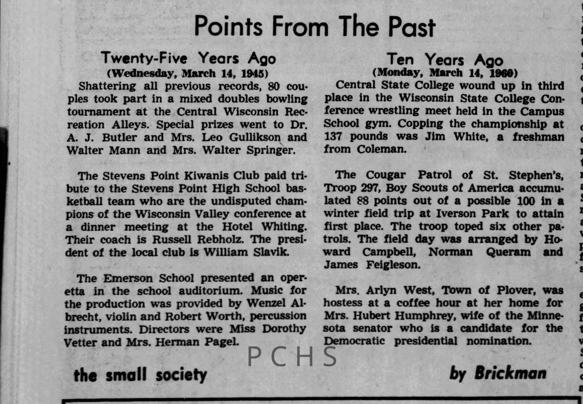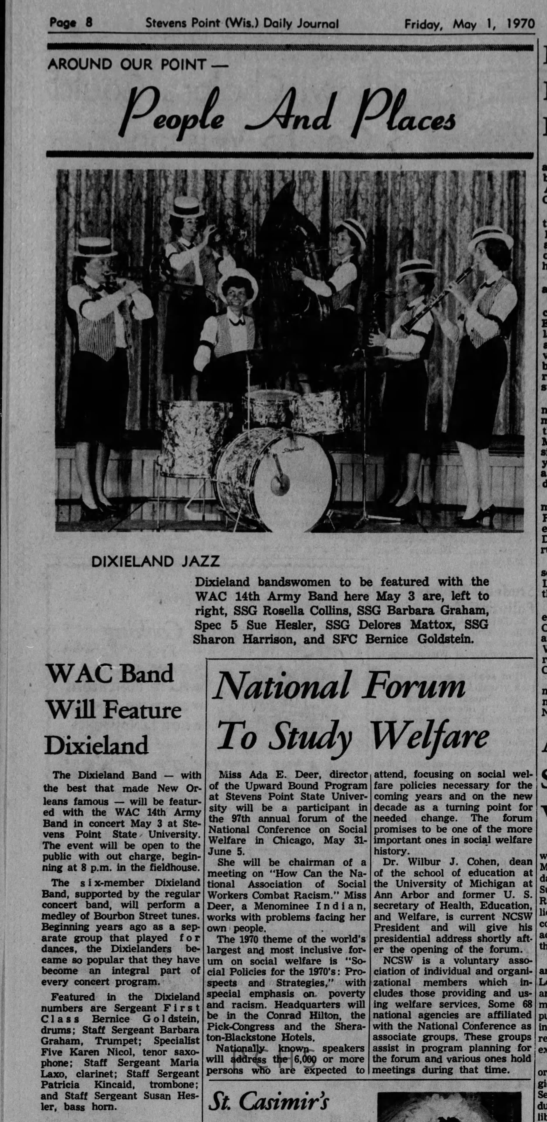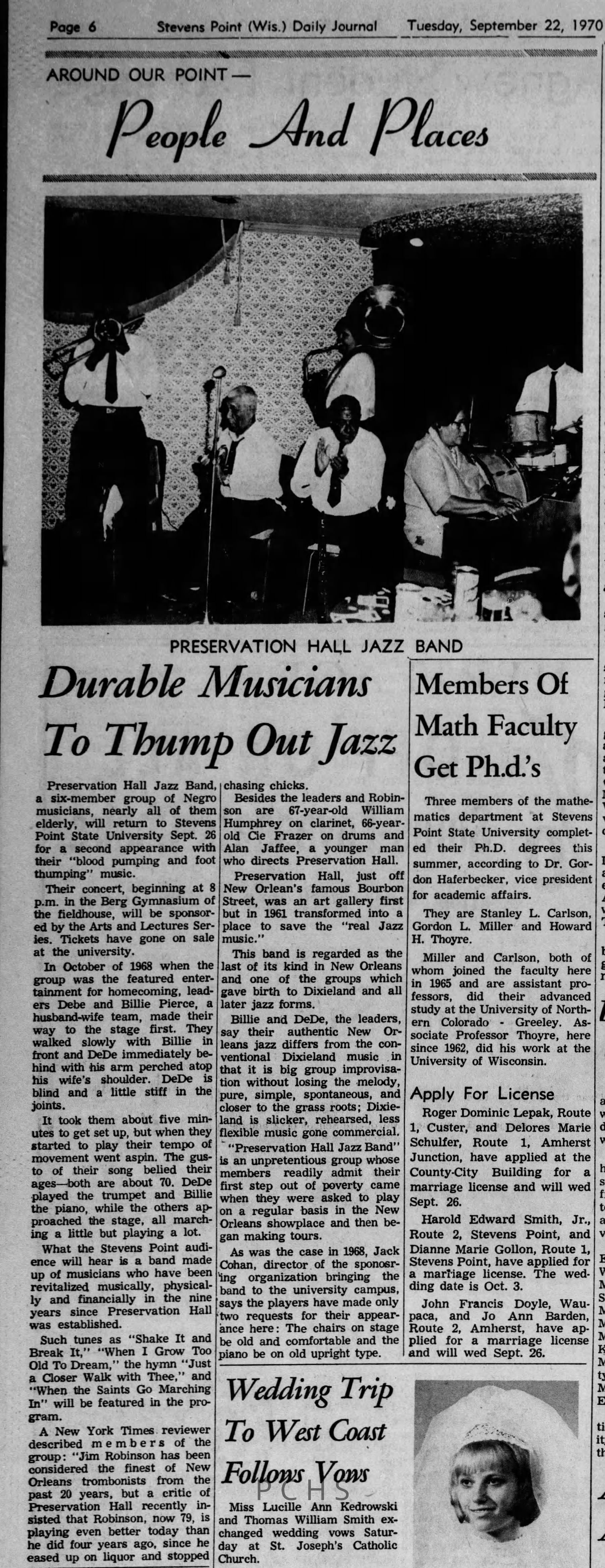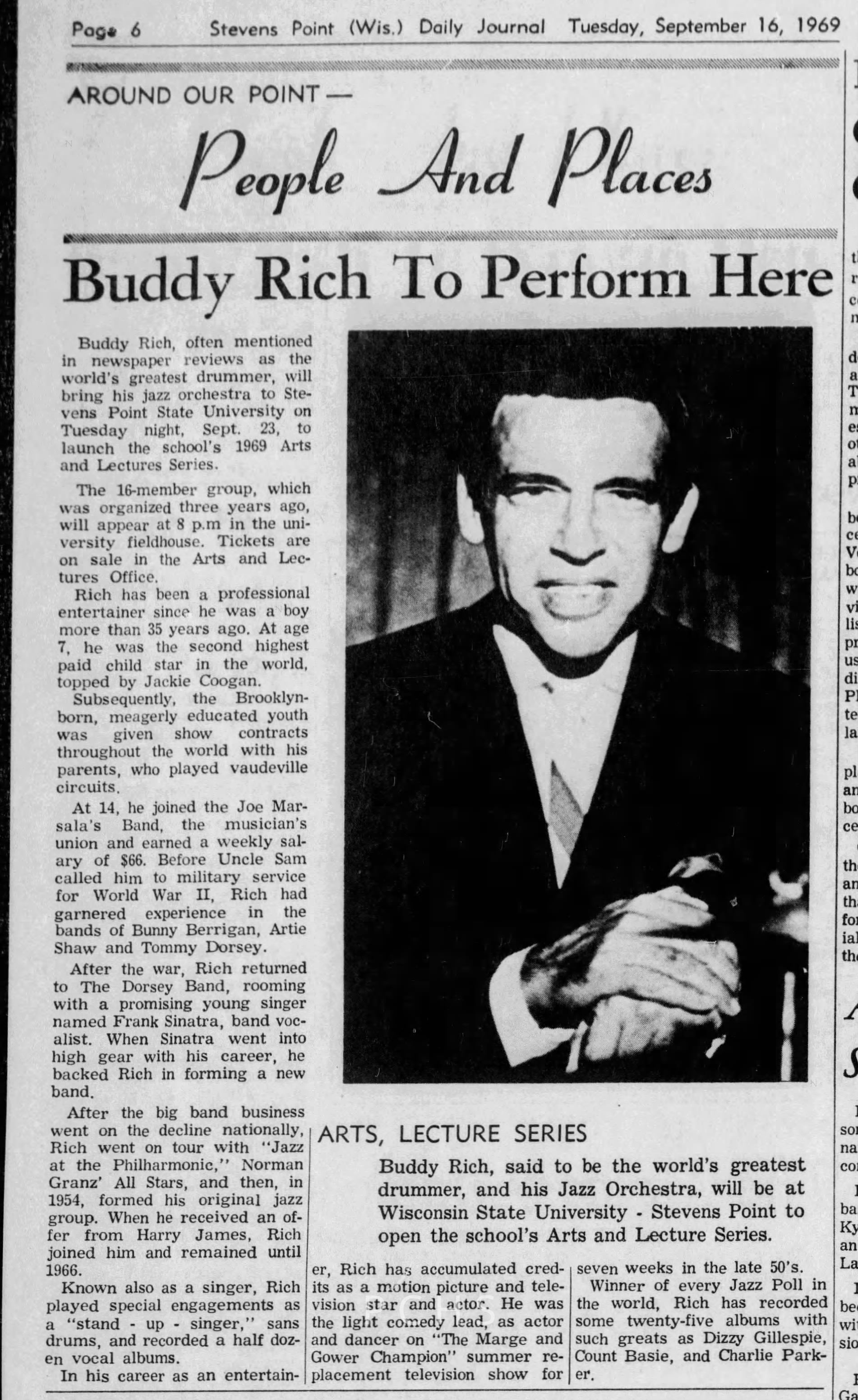 Newspaper clippings from Portage County newspapers. These clippings show jazz musicians, bands, events, school organizations, and traveling shows from 1961-1970. Some highlighted topics are Bob Worth, Carman Lane, Boston Furniture, Don Chesebro, Jim Laabs, Kenny Vogt, Bill Atwell, the Nu-Notes, bandshell, WSU, La Vern Ives, Point Bowl, Dave Dick, Lynn Eckes, Treasure Island, KoKo Club, Brubeck Quartet, Tiny Tina, Uncalled Four, Wally Ives, James Duggan, Madrigals, Unnamed Four, Ruth Salzmann, American Federation of Musicians, Dave Brubeck, Graham Lane, Buddy Rich, Franz Roehmann, Wenzel Albrecht, Preservation Hall jazz band.Created By