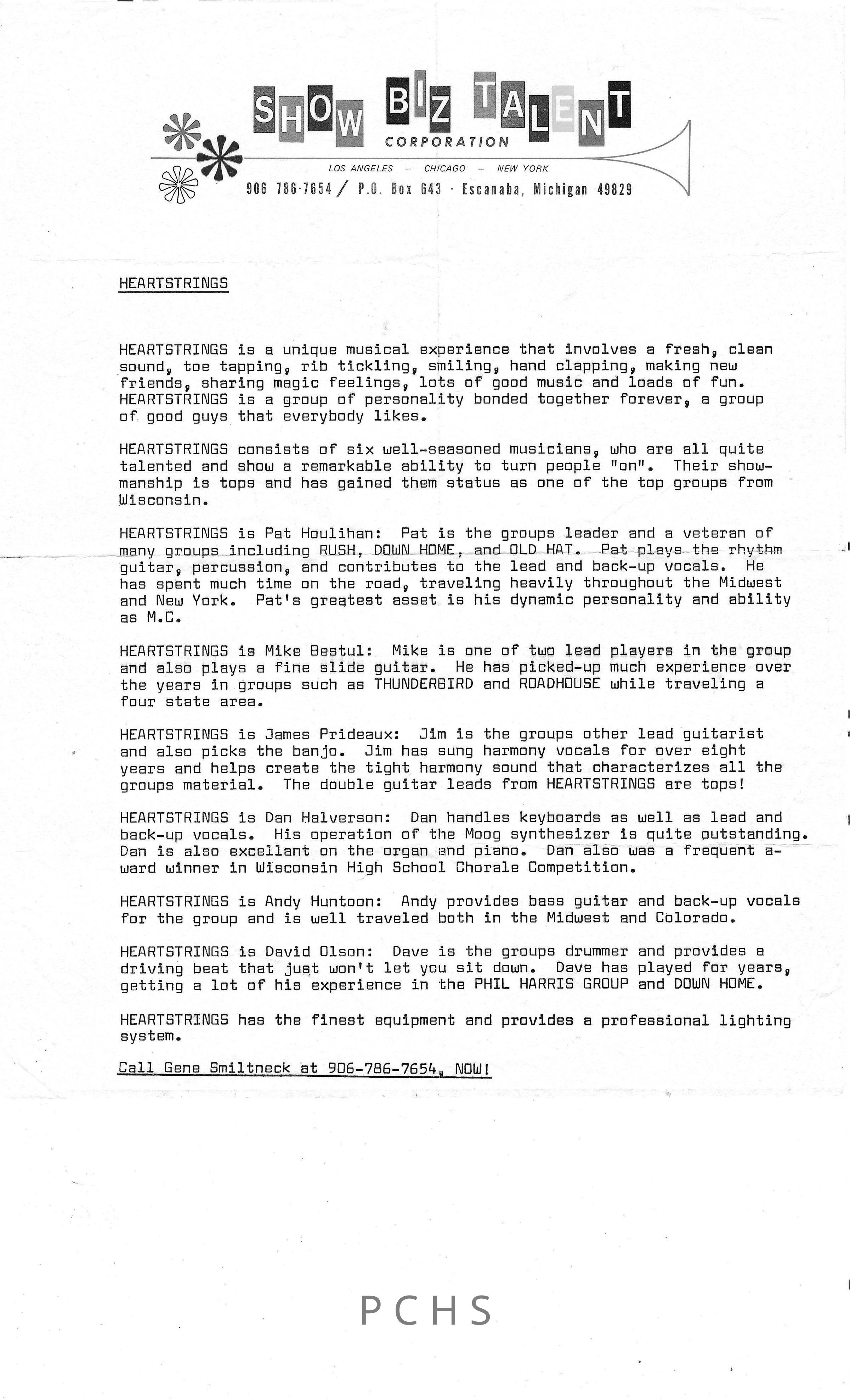 Included here are photos, newspaper articles, and documents that show Jim's involvement in music throughout his life. Jim was lead guitar and banjo for the Heart Strings Melody Band from 1974-1982. He was the lead guitarist for Otis & The Alligators after Heart Strings disbanded. Heart Strings has attended reunions at Oldstock at the Indian Crossings Casino.Created By