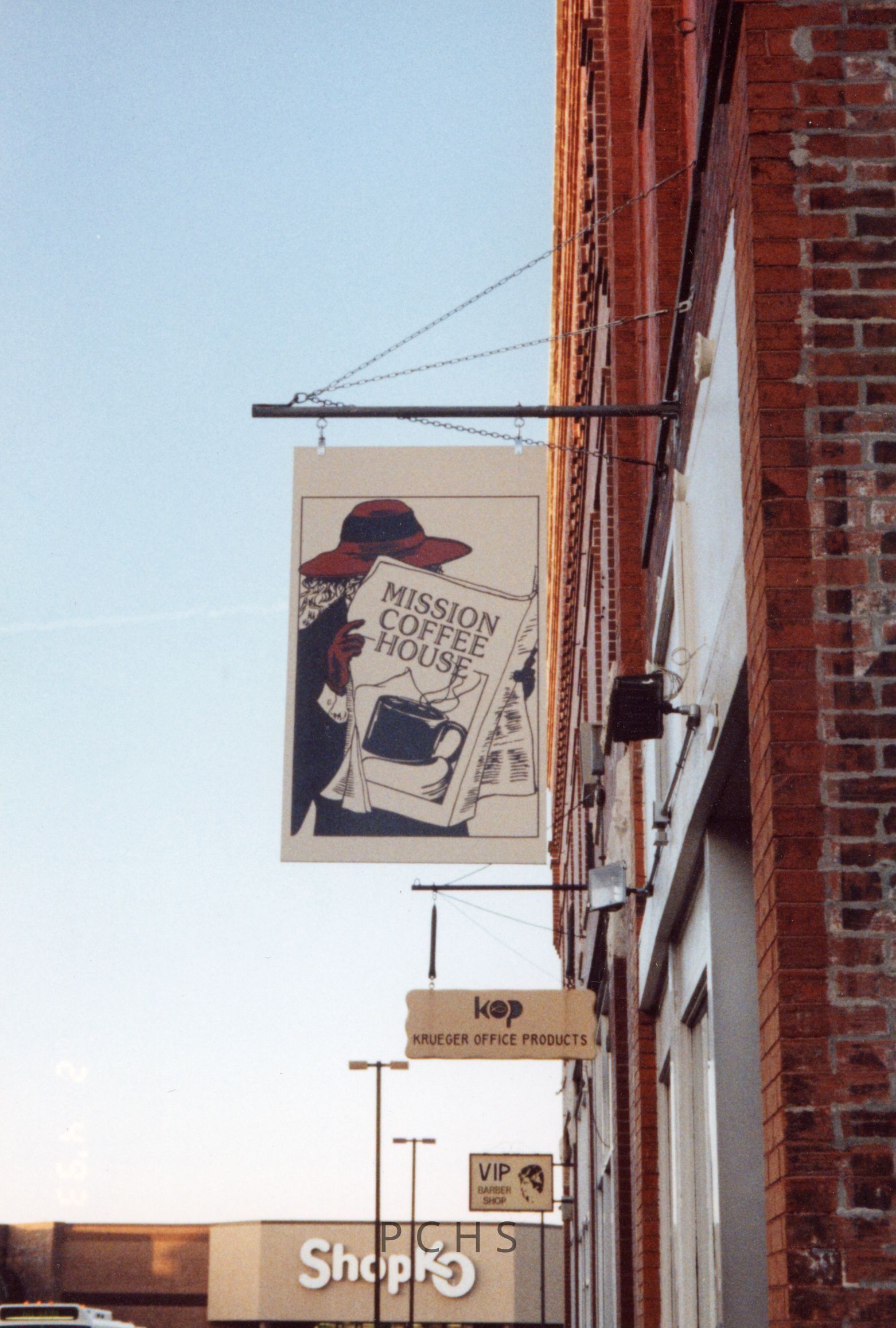 Newspaper articles covering the early years of the Mission Coffee House with photos of the building sign.Photograph Details