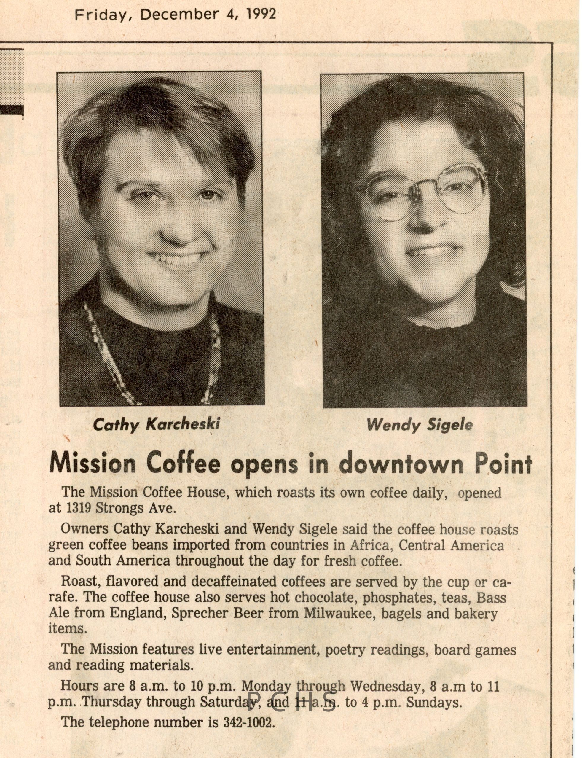 Mission Coffee House photos and newspaper articlesEntry/Object ID
