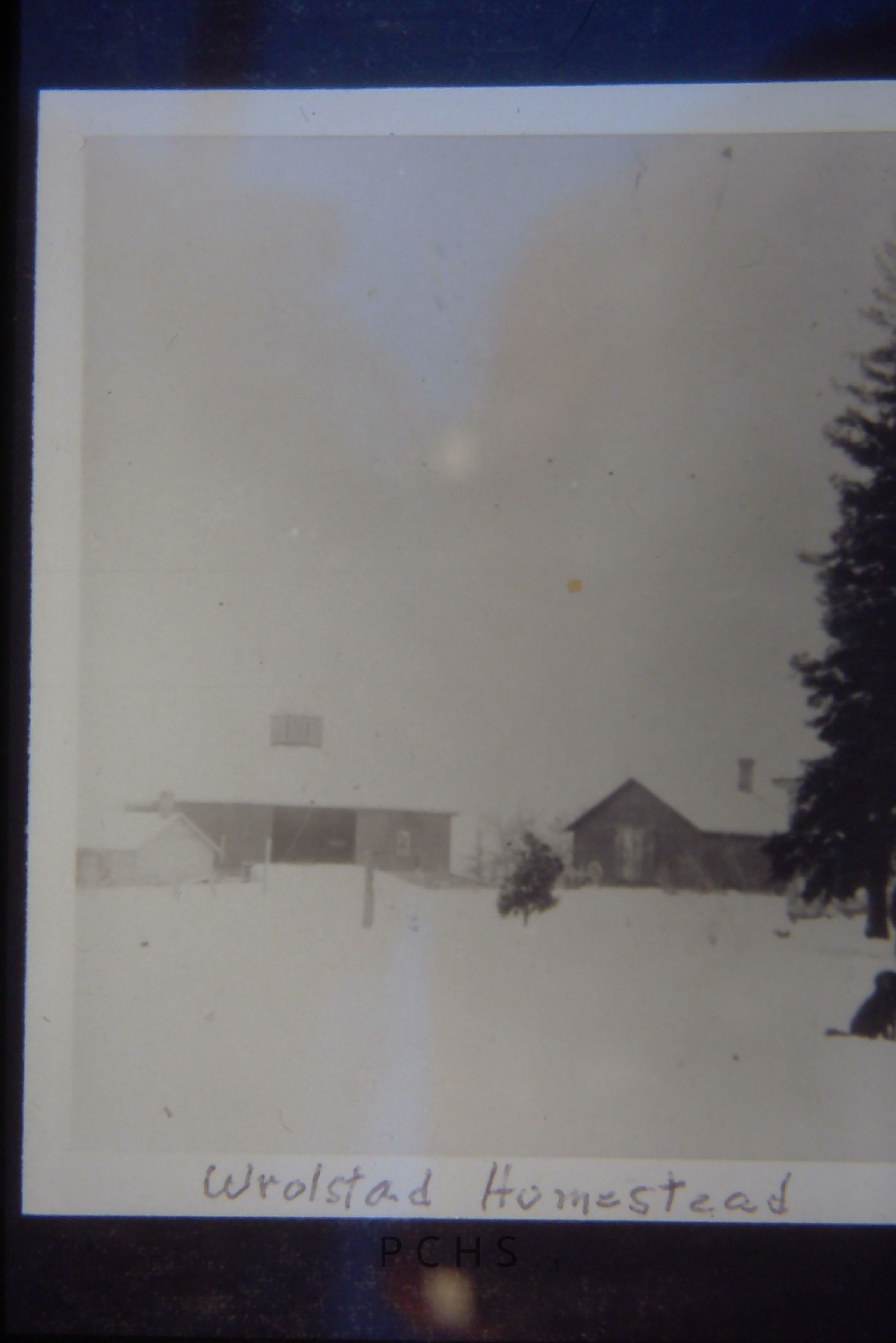 Martin and Hannah Wrolstad on their farm, northeast edge of Peru, village intersection of county highways T and Z, town of New Hope, Portage County, WI. taken around 1910.