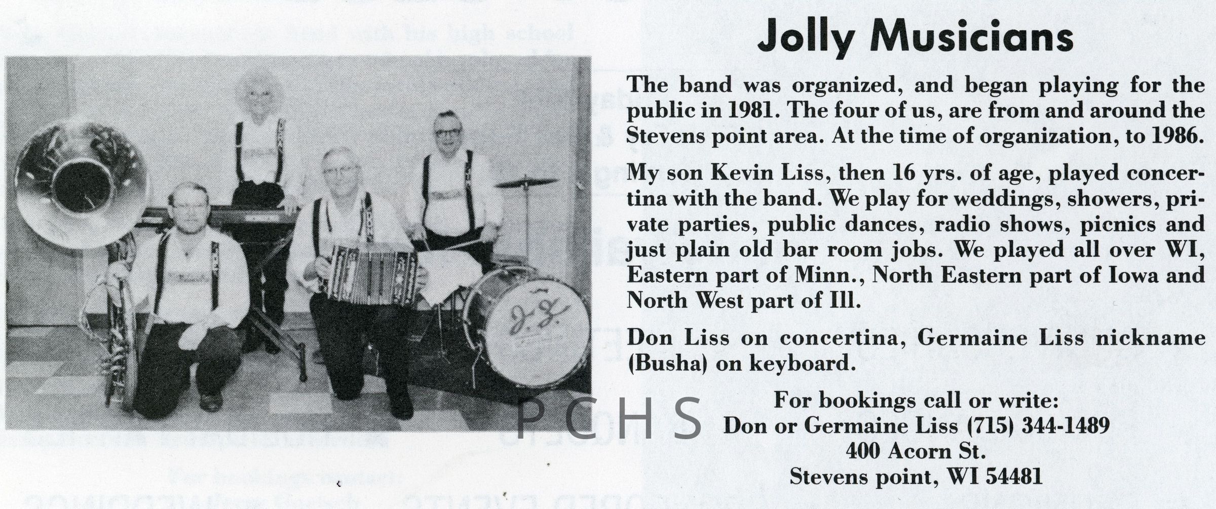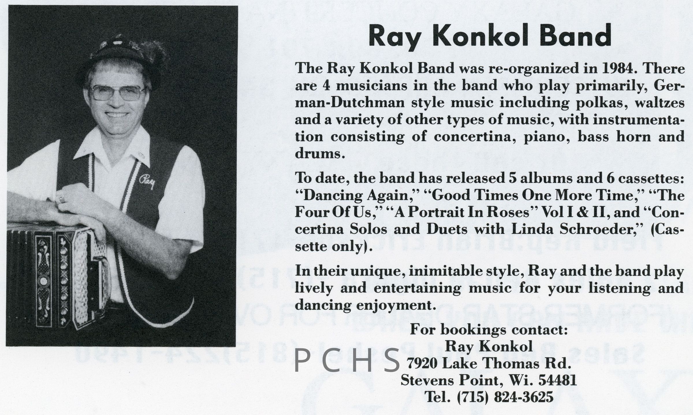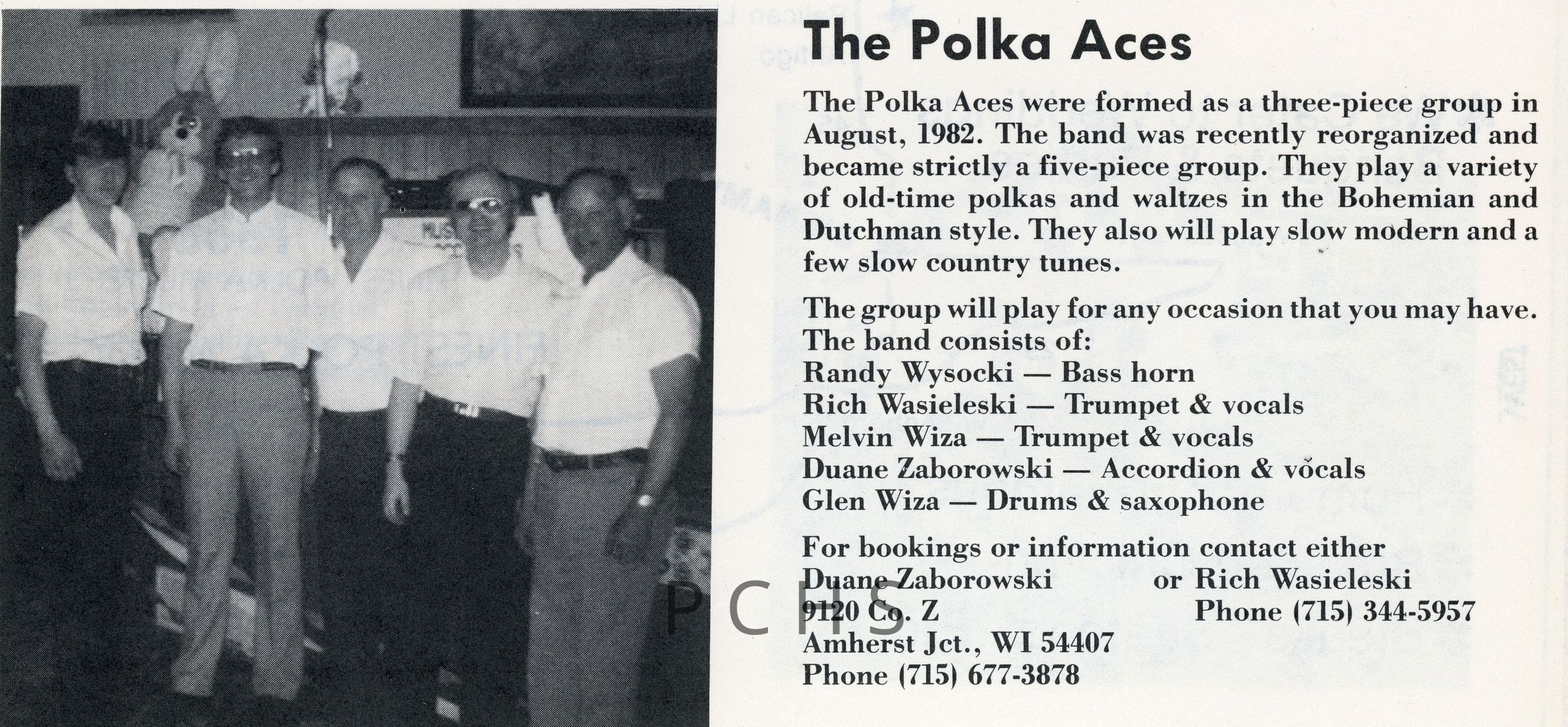 Newspaper clippings, documents, and photos show a variety of the polka bands that played in Portage County.Created By