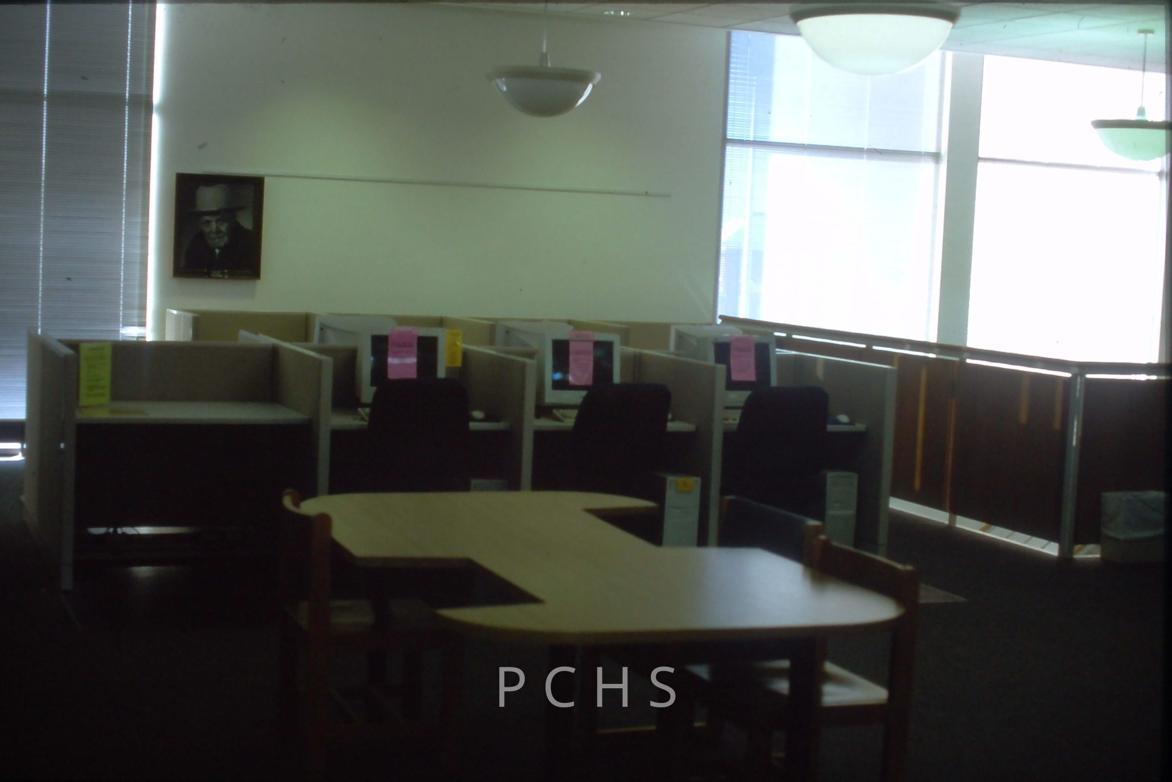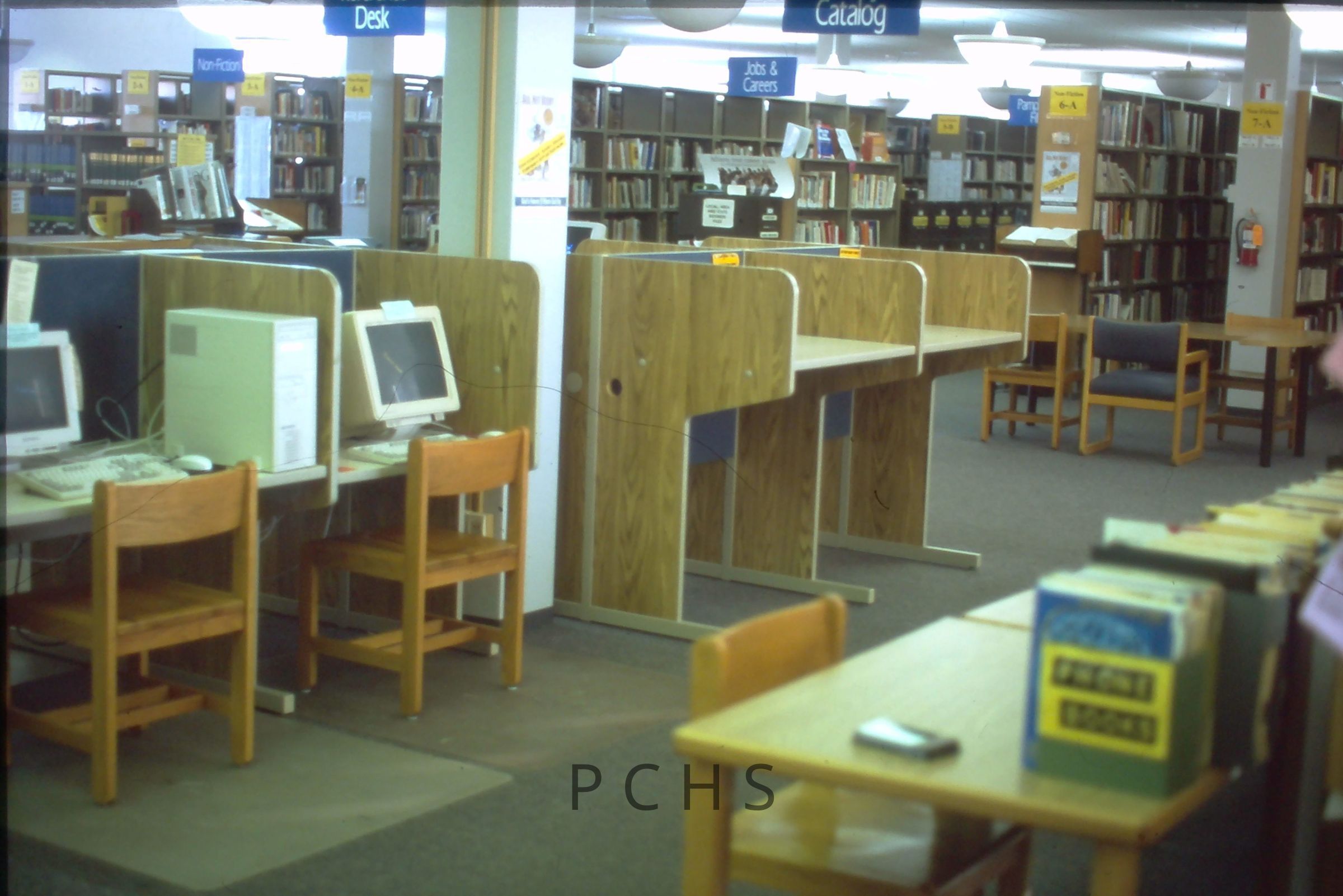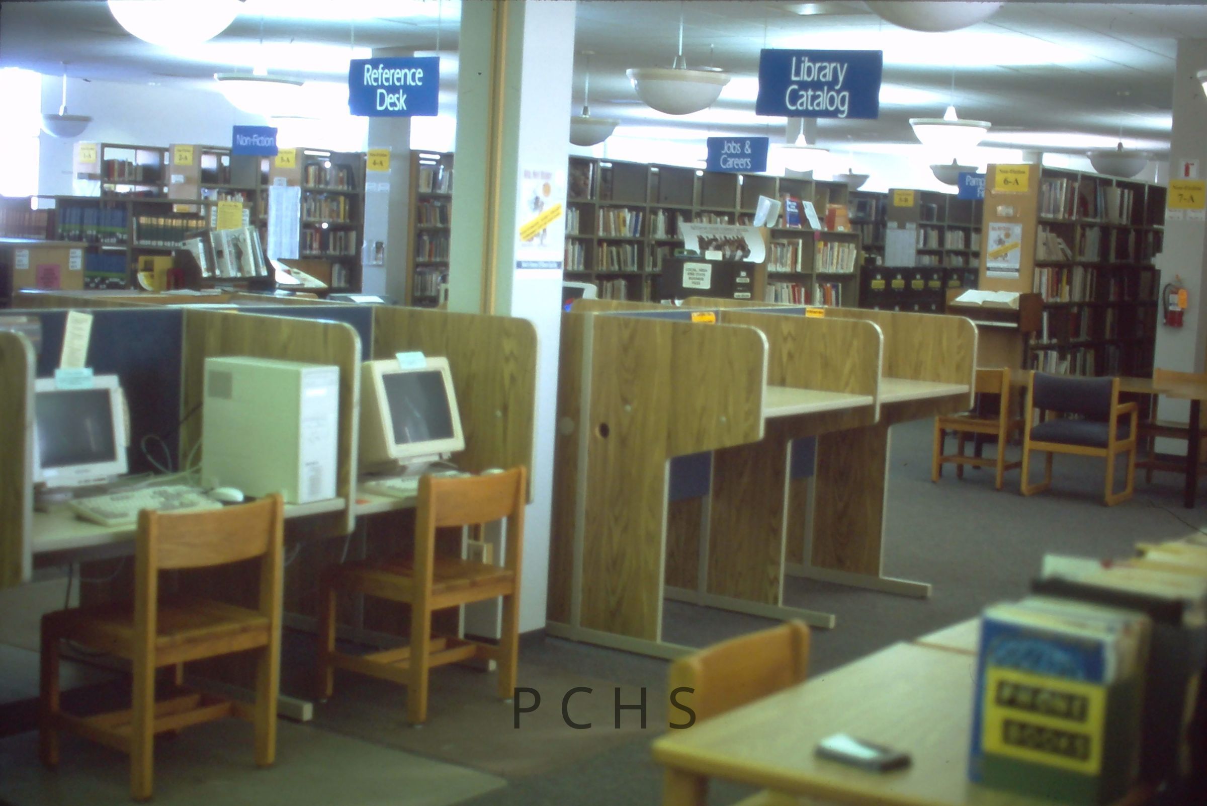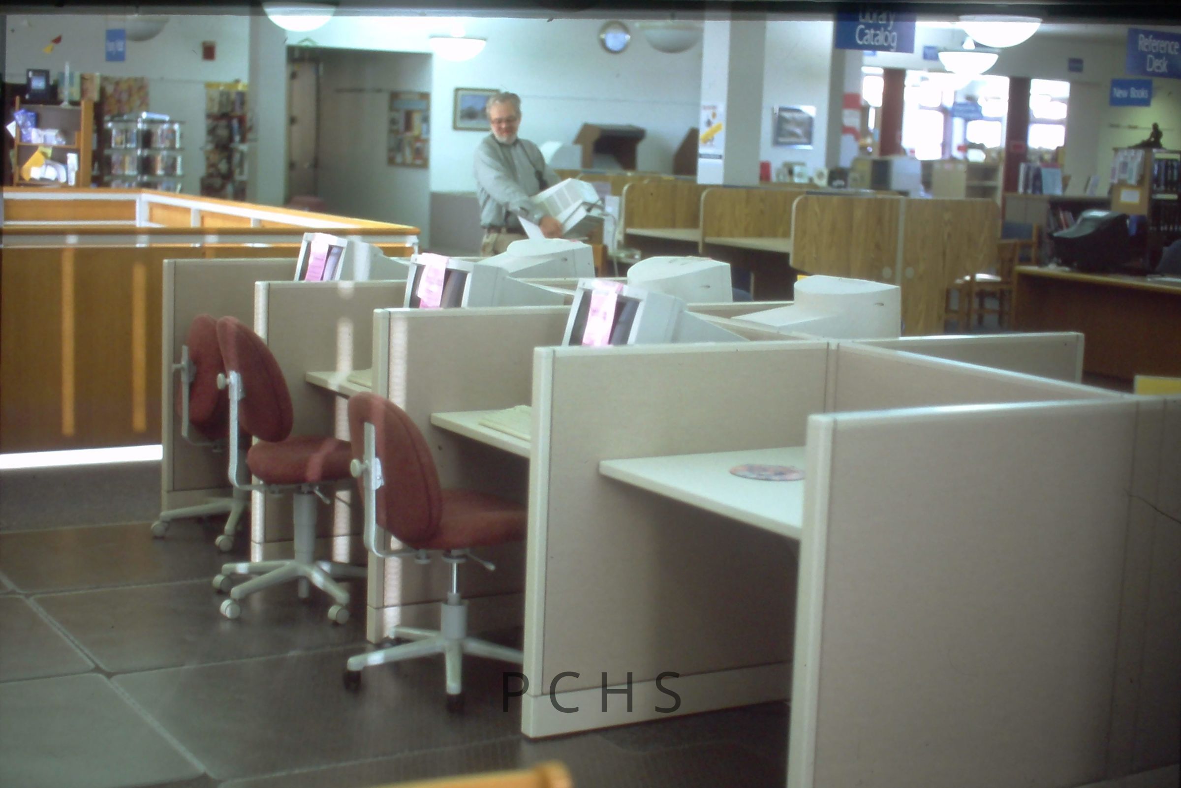 Three photos from February of 2003, the rest are undated. Captions from February 2003: Portage County Public Library, Stevens Point, WI. February 2003. 2nd floor, new computer desks installed.Created By