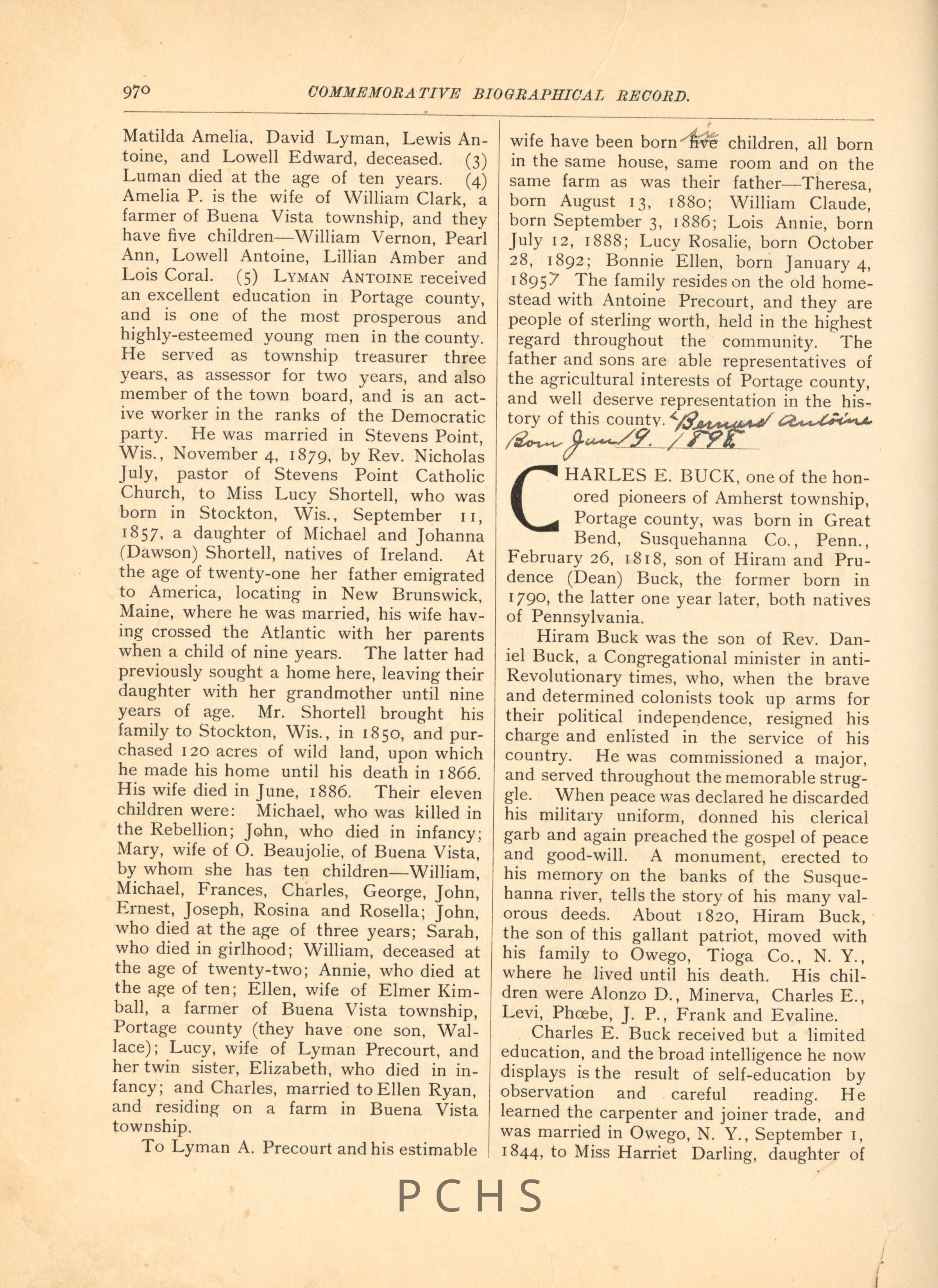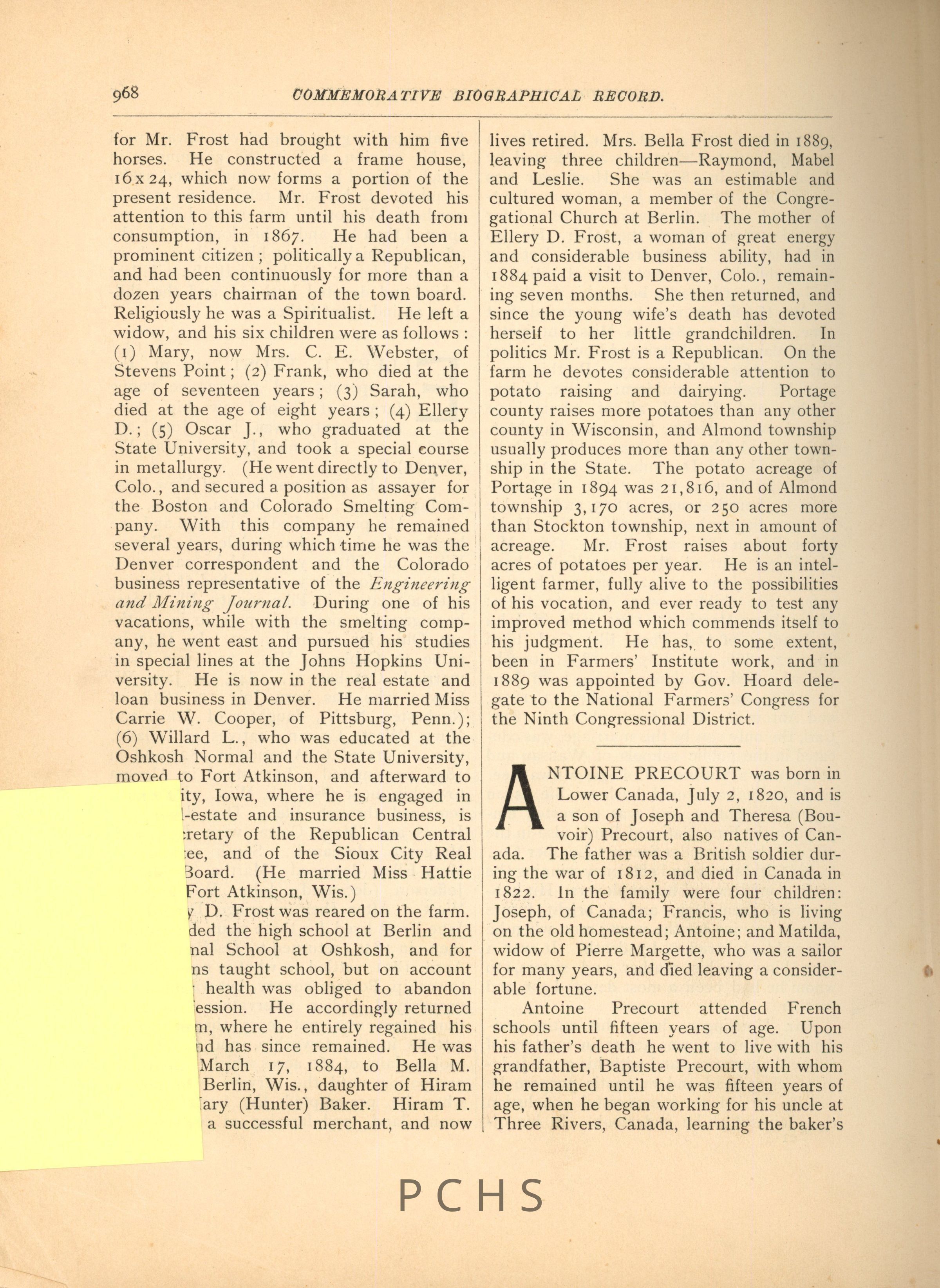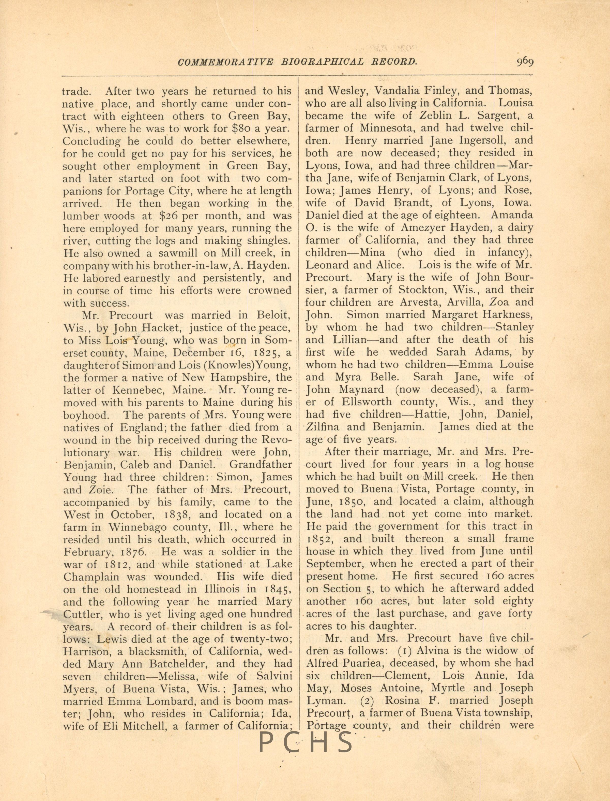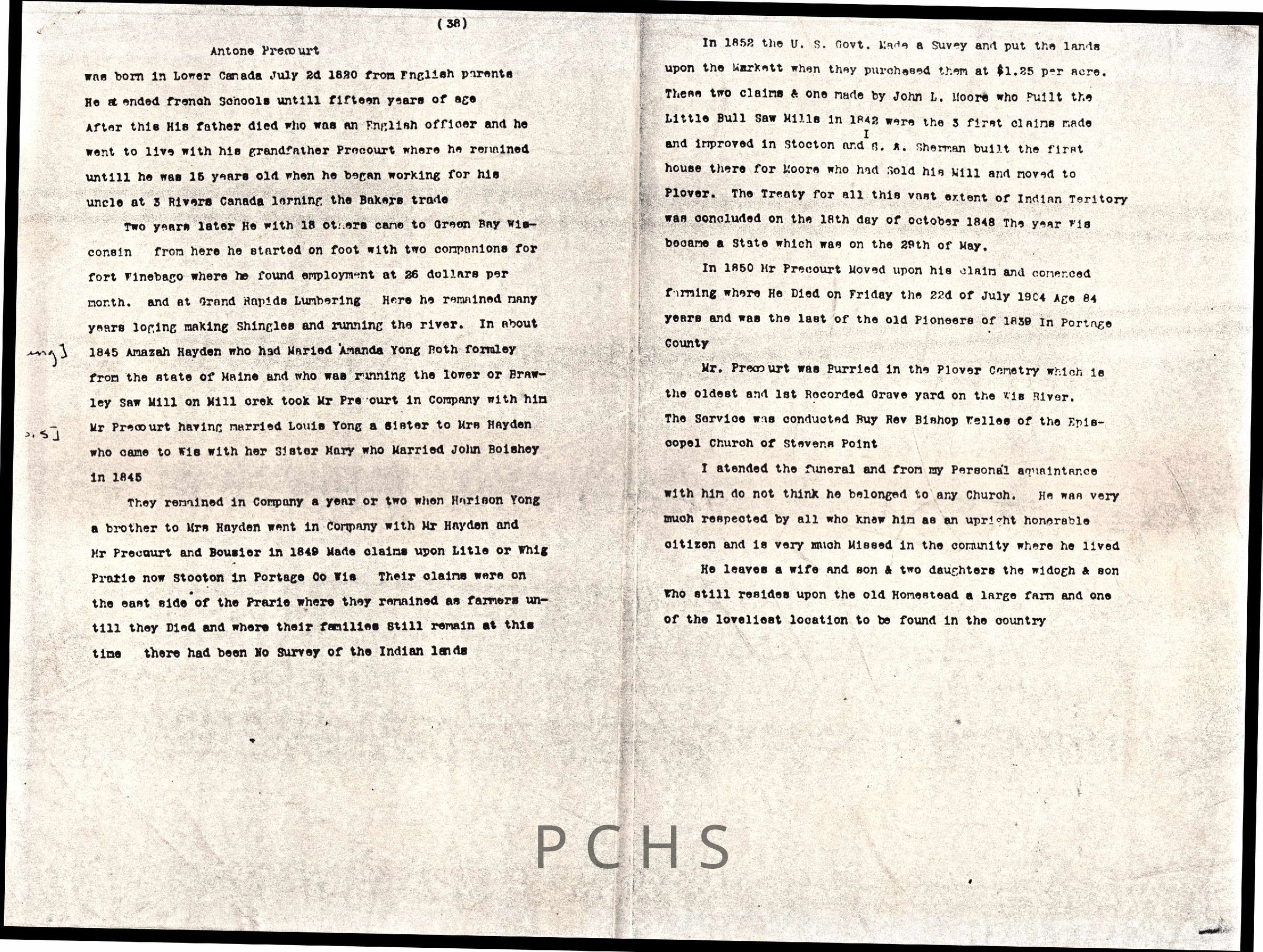 Documents about the Precourt family in Portage CountyCollection