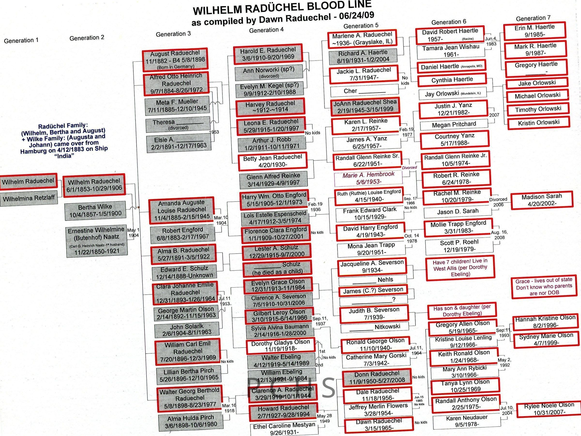 A family tree of the Raduchel family, compiled by Dawn Raduechel and later scanned by a PCHS volunteer.Created By