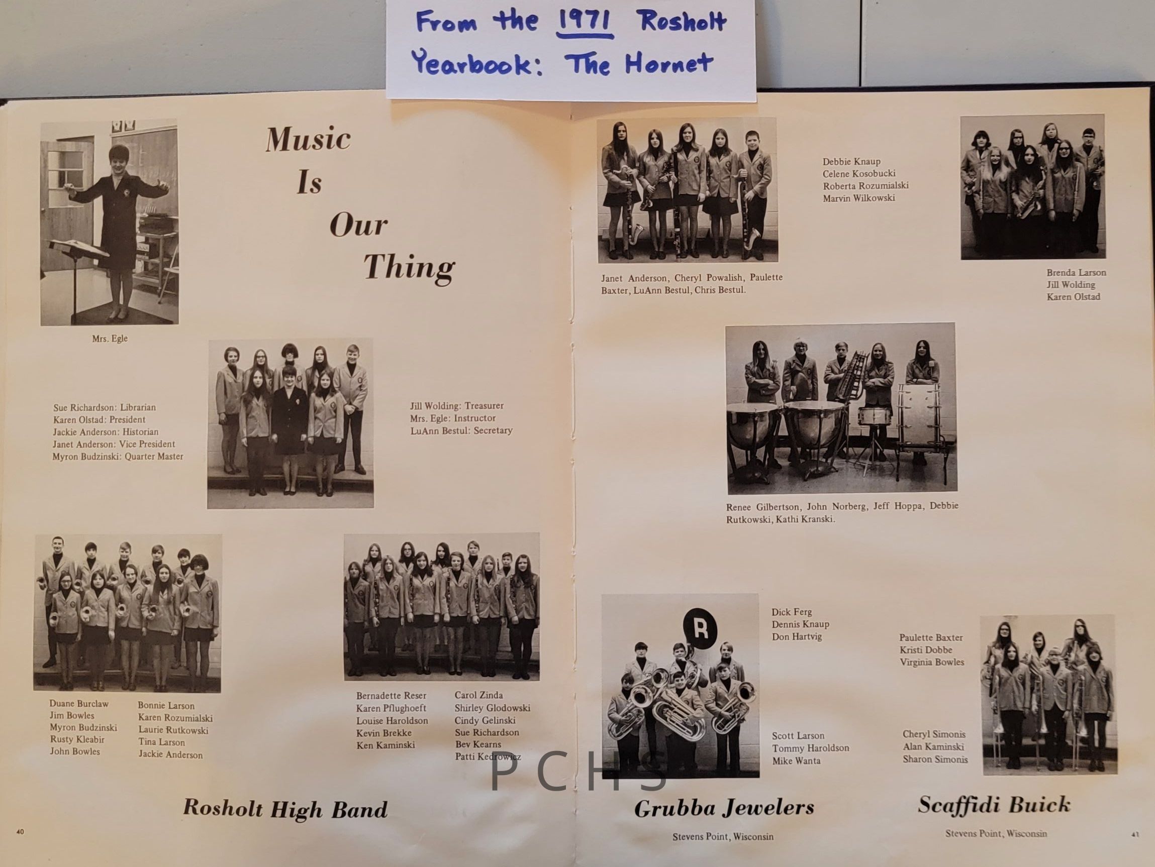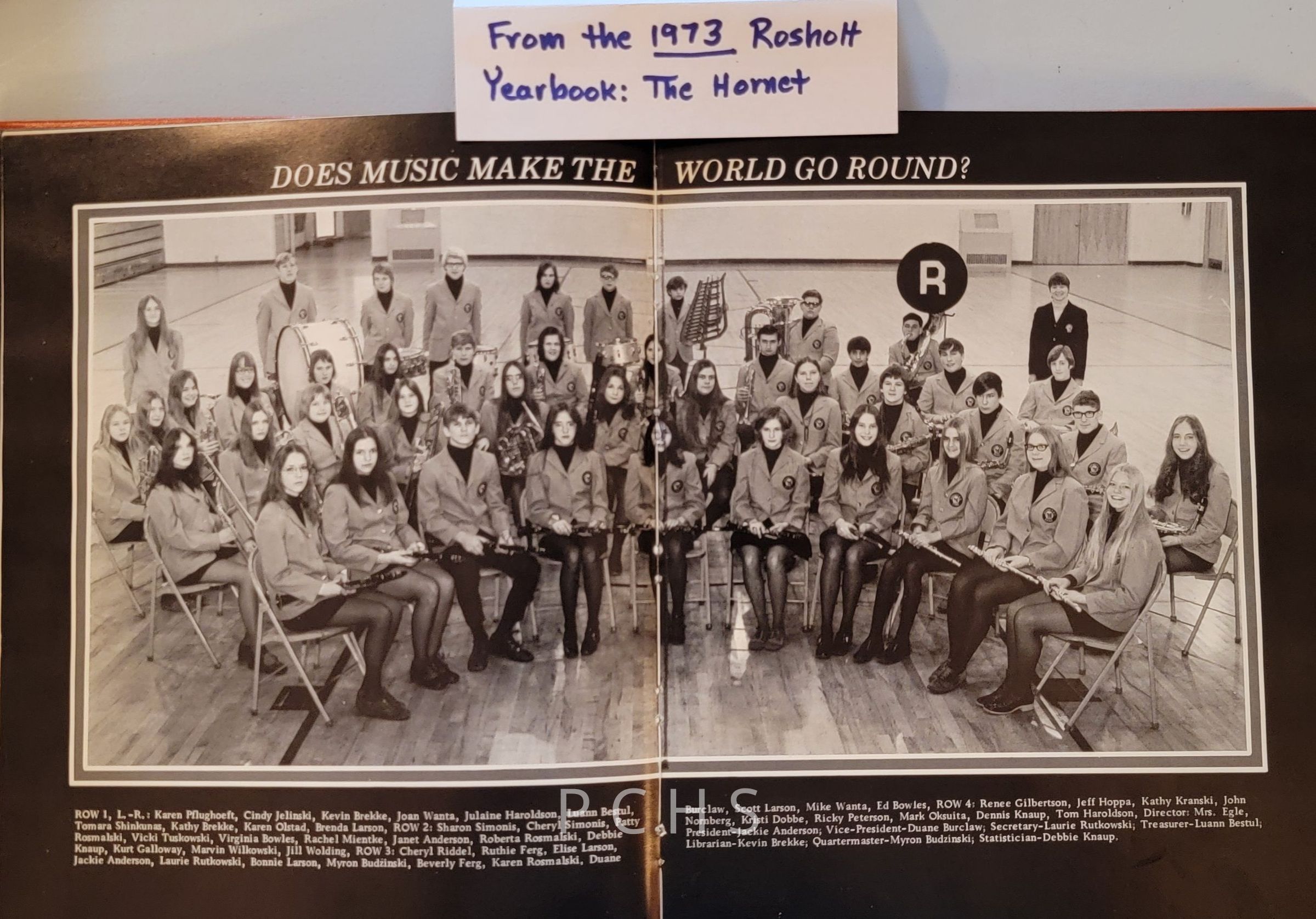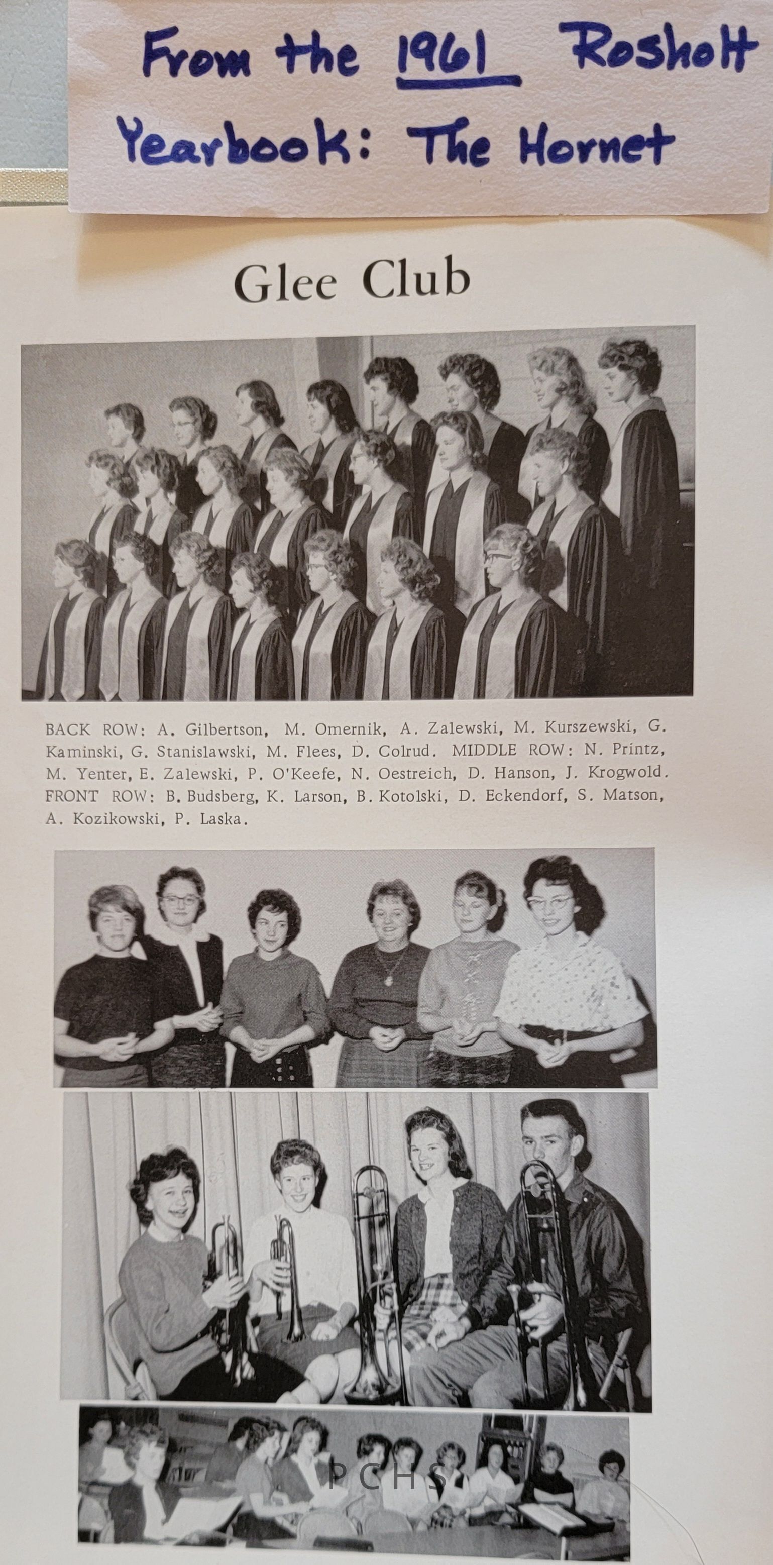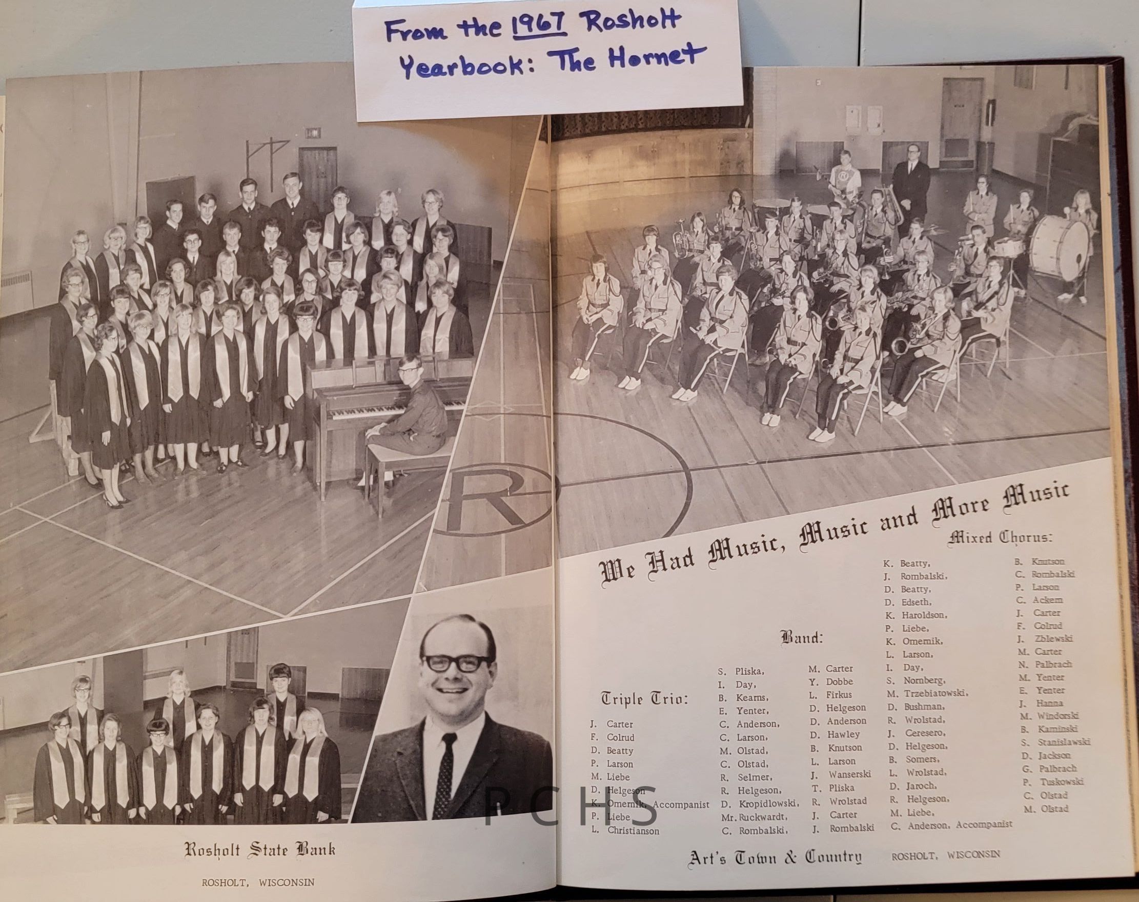 Photos and documents show highlights and history from the Rosholt school music program. These were taken from The Hornet yearbook.Created By
