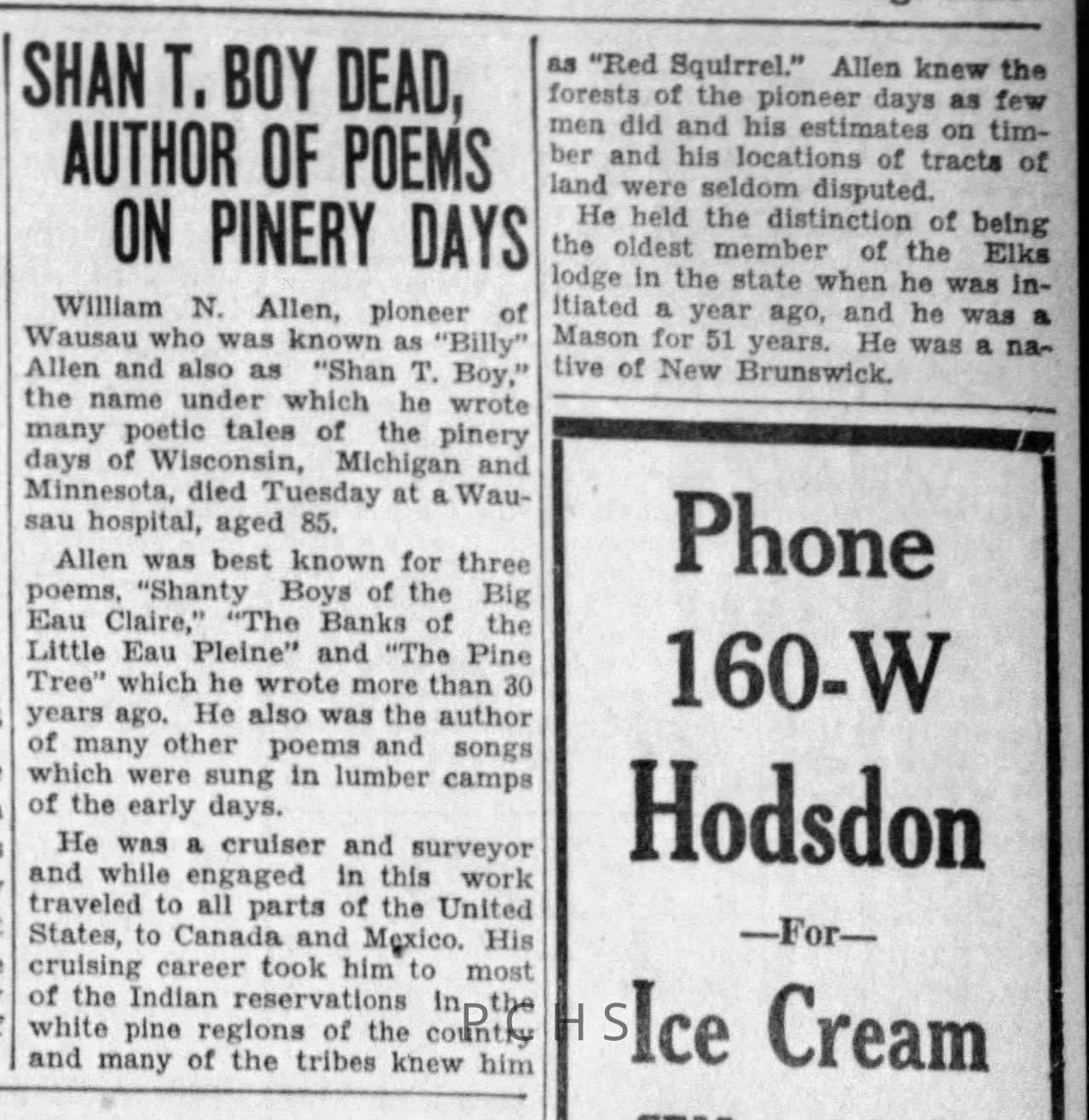 Two newspaper clippings that mention the Shan T Boy and the work he was famous for.Created By