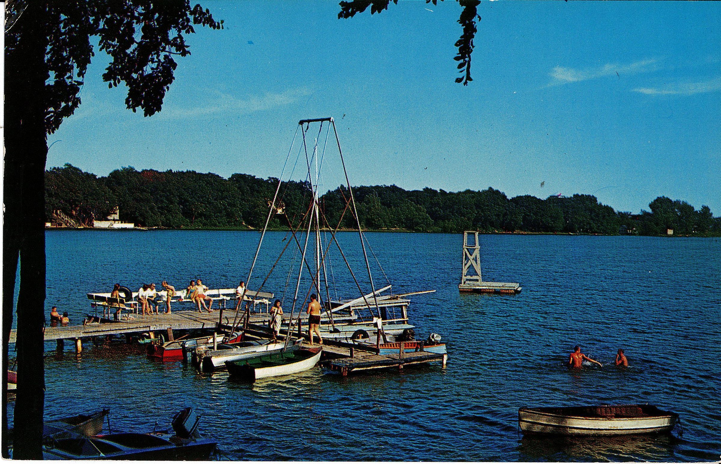 Full color photographic postcard of boats and swimmers on and in Flint Lake, on the north side of Valparaiso, taken in 1958.Acquisition
