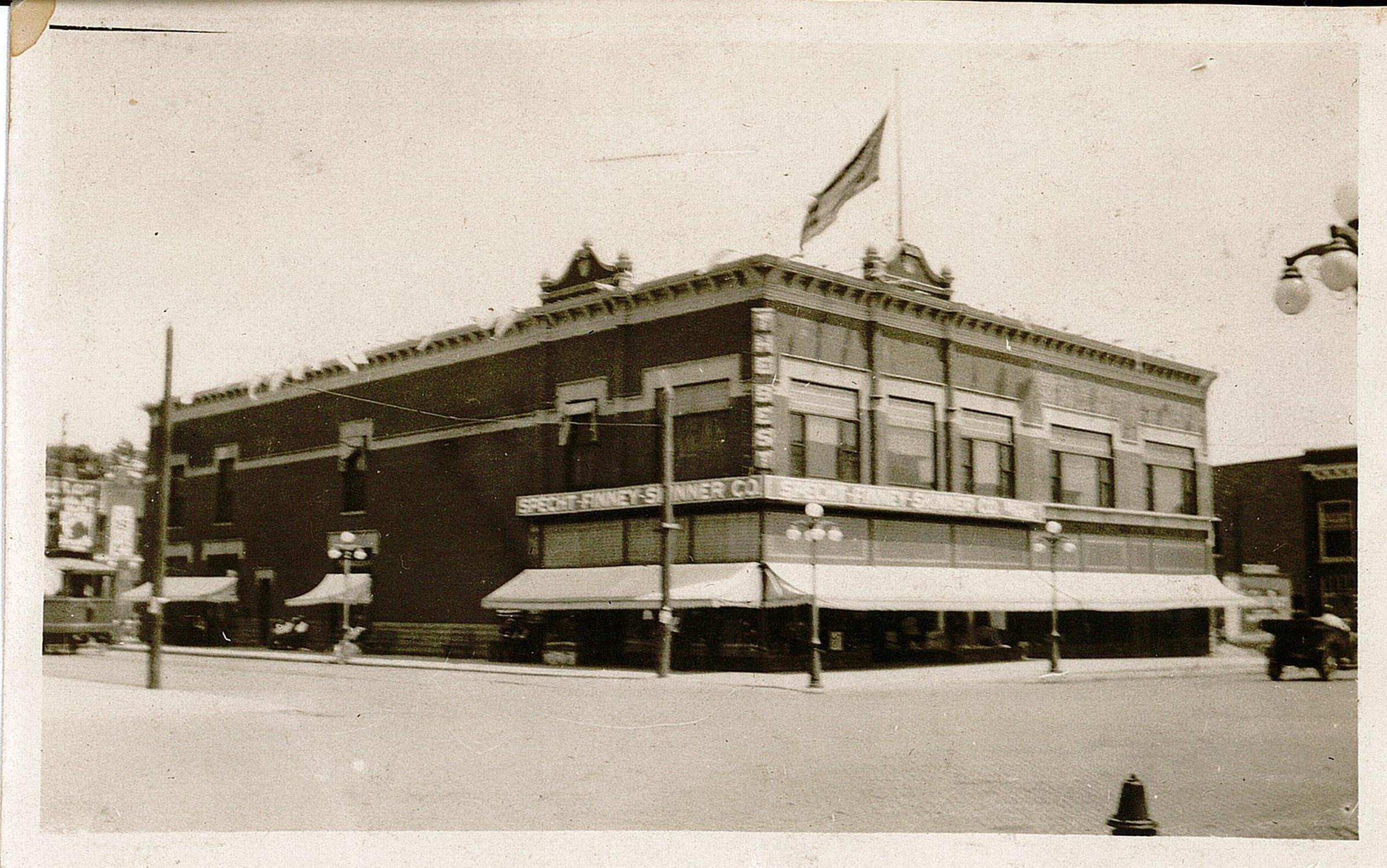 Black and white photograph of the Specht-Finney-Skinner department store, located at the northeast corner of Main (now Lincolnway) and Franklin.Acquisition