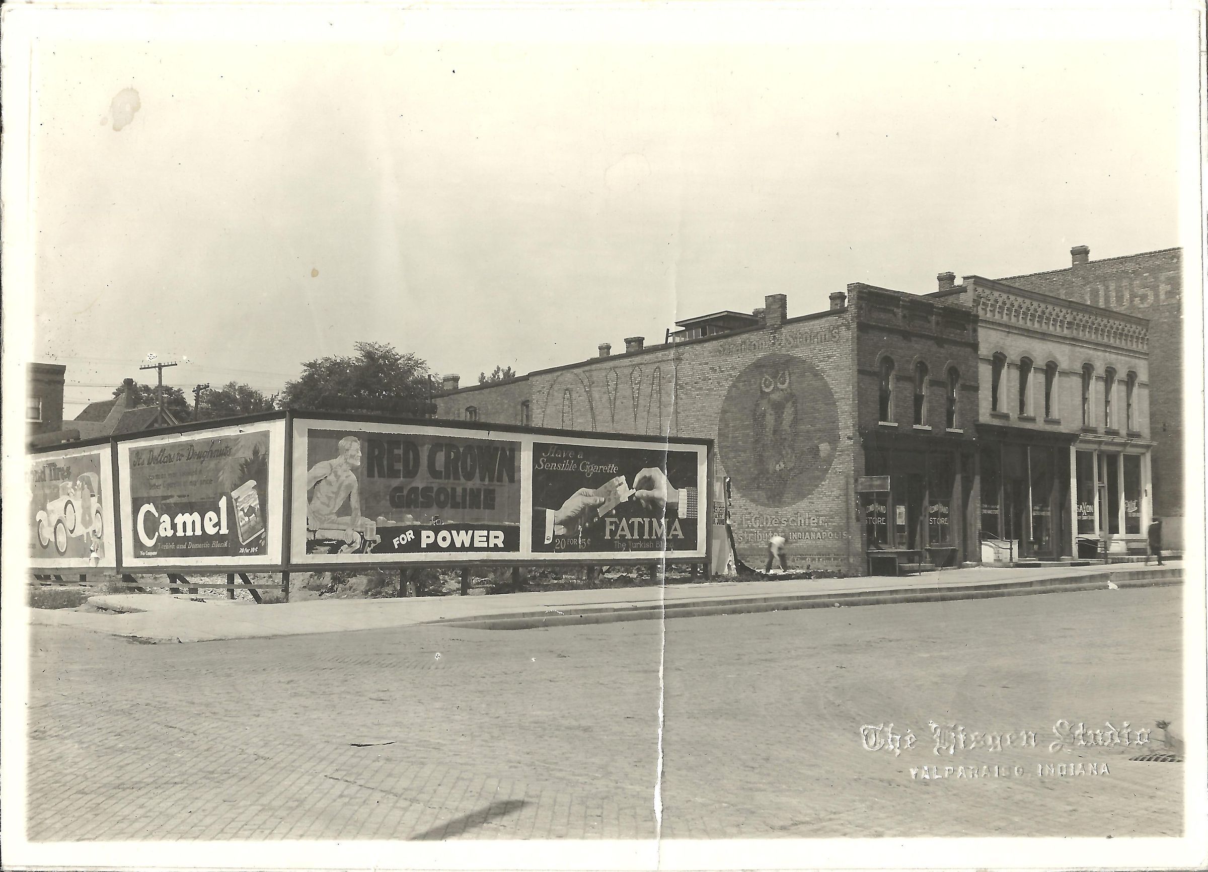 Black and white photograph of downtown Valparaiso, in 1918. Construction on left is believed to be the building of the Downtown Post Office, today Valparaiso City Hall.Acquisition