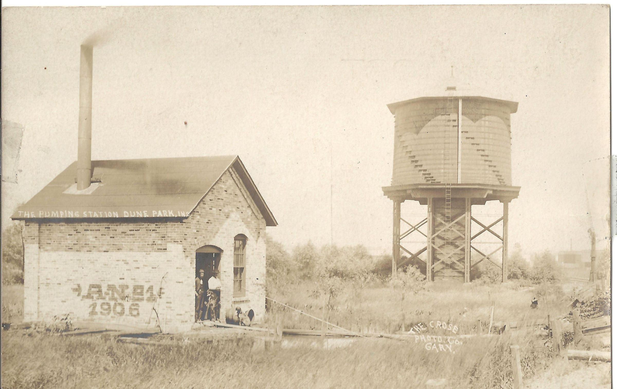 Sepia-toned photograph of the Pumping Station at Dune Park.