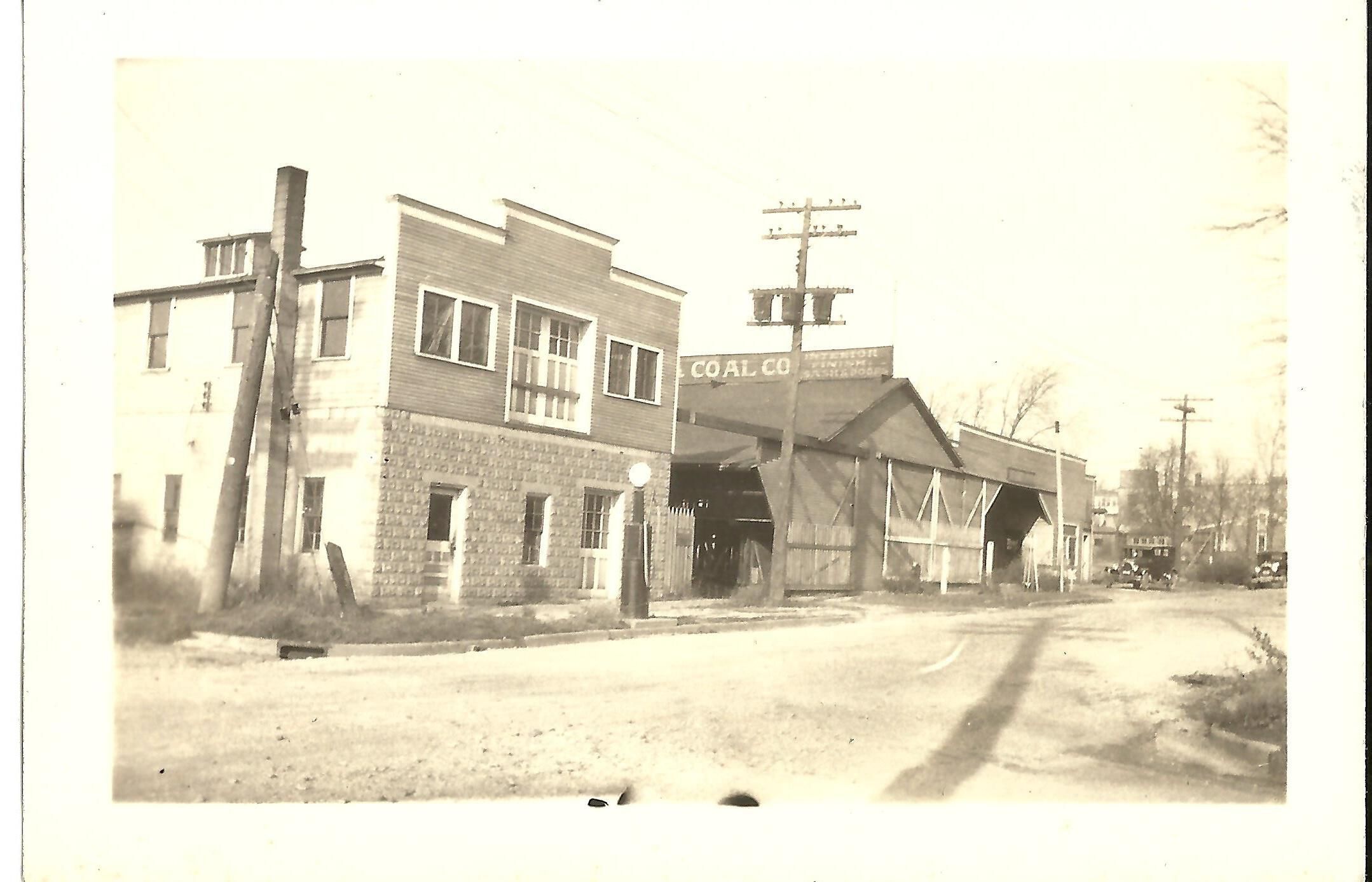 Sepia-toned photograph of the Wilson Lumber and Coal Warehouse building. The Wilson company was known for building several halls on the Valparaiso University campus, including the WWI barracks.Acquisition