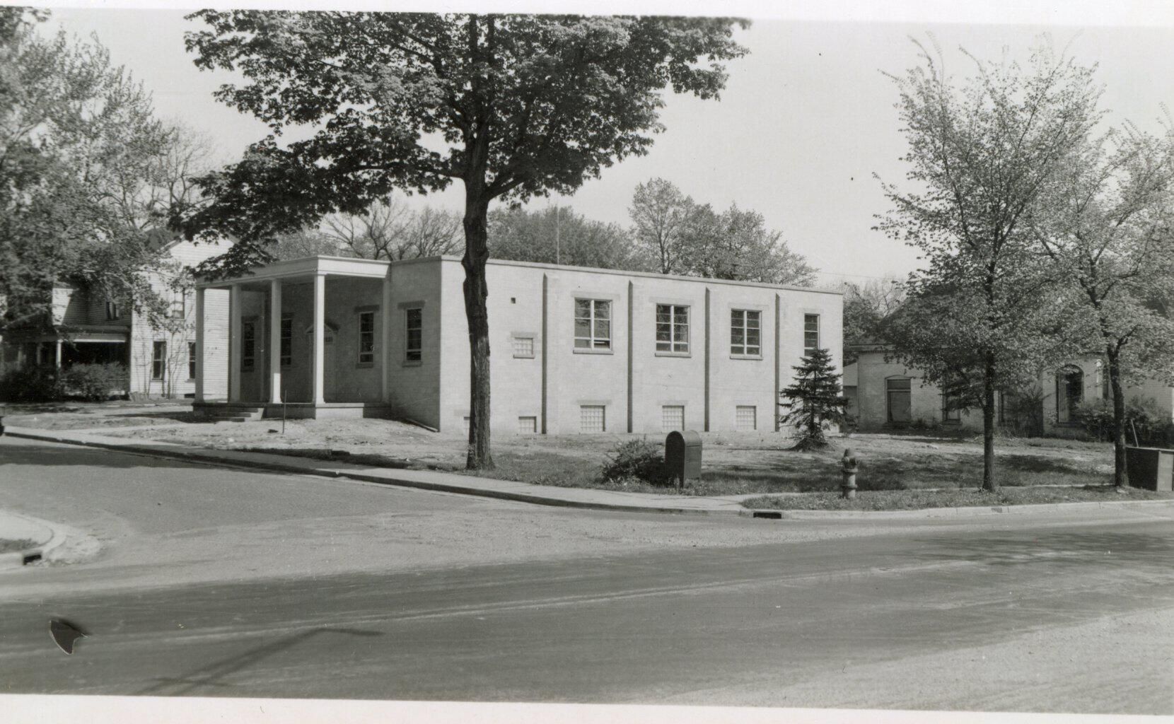 From the Steve Moeckler collection. This is a photo of a building with four pillars in the front. Note on the back reads "Legion?"Acquisition