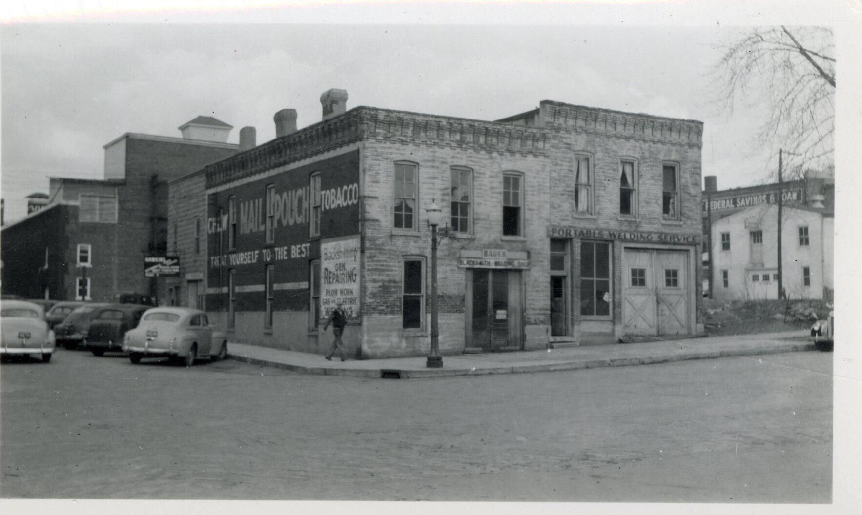 From the Steve Moeckler collection. This photo shows a building. Inscription on the back reads "#1 Old black smith shop Indiana and Lafayette"Acquisition