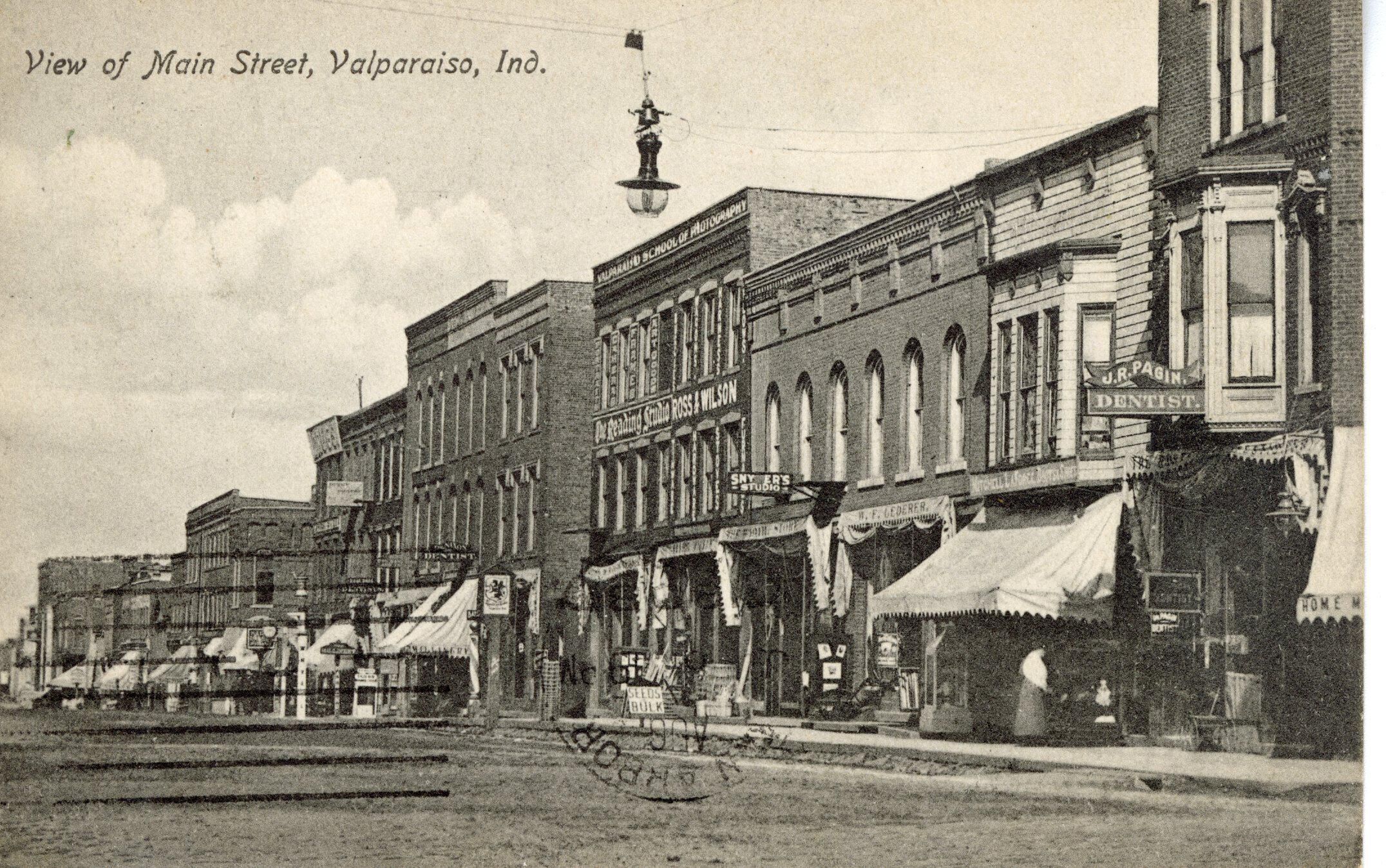 From the Steve Moeckler collection. This postcard shows "View of Main Street, Valparaiso, Ind." Adressed to "Mrs N Kiedle Ann Arbor Mich 1016 Wall St." Letter reads "Fanny. H__w Will double check it. To me if he can. I need it _____. Wl_."Acquisition