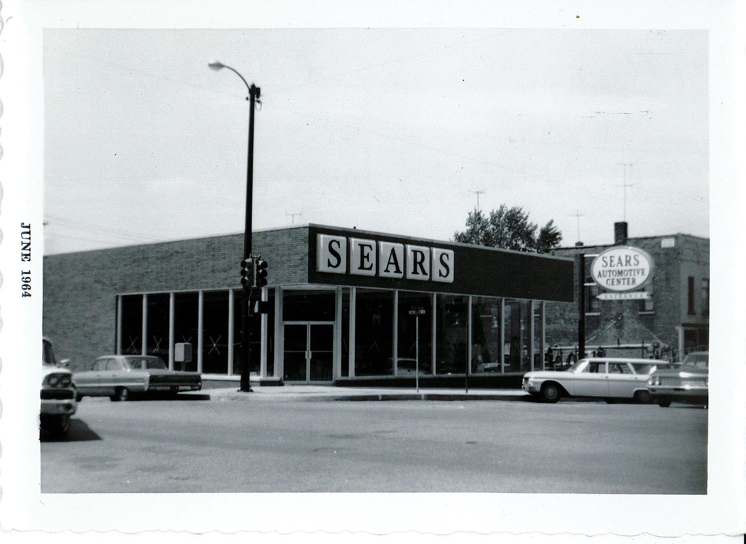 Black and white photograph of the Sears building in downtown Valparaiso. Notes on back read, "Sw Corner Indiana & Washington, Site of Early Store of Henry Leetz." Building is Blockhead Brewery at present.Acquisition