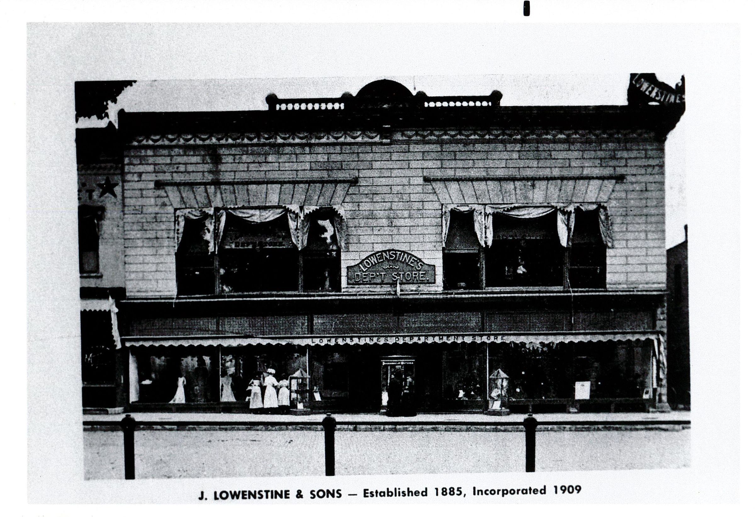 Item is a copy of a black and white picture of the Lowenstines' Department Storefront. Three women stand outside.Acquisition
