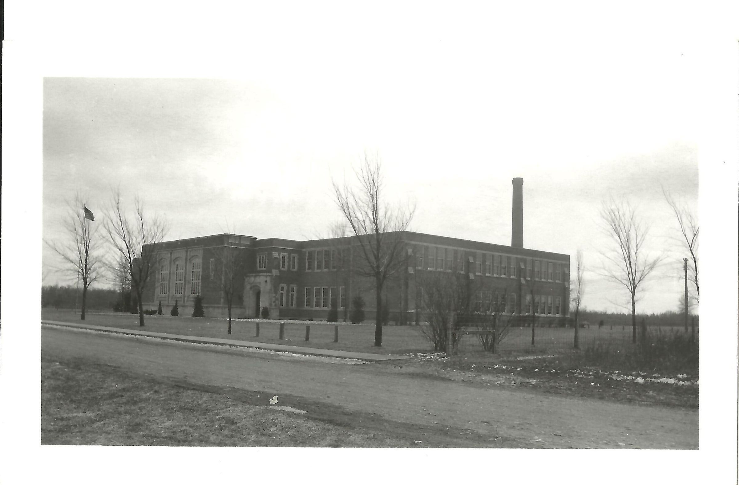 Black and white photograph of the Kouts High School, circa the 1940s.Acquisition