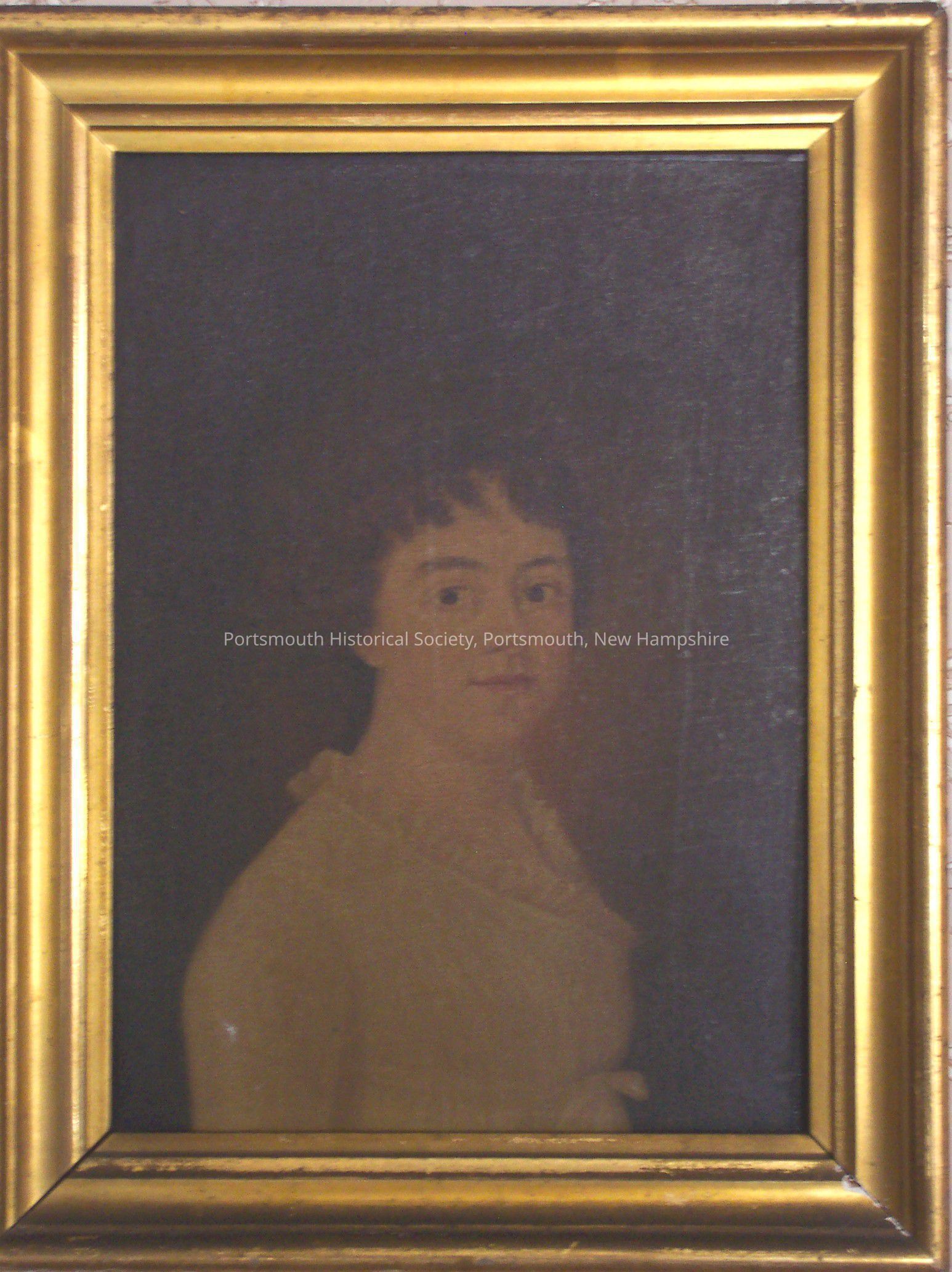 Collection also includes a small b/w photograph of the sitter as an older woman, in oval frame, with family geneaology inscribed on the back. In the PHS collection at Portsmouth Athenaeum. It also has the LR168 sticker.Collection