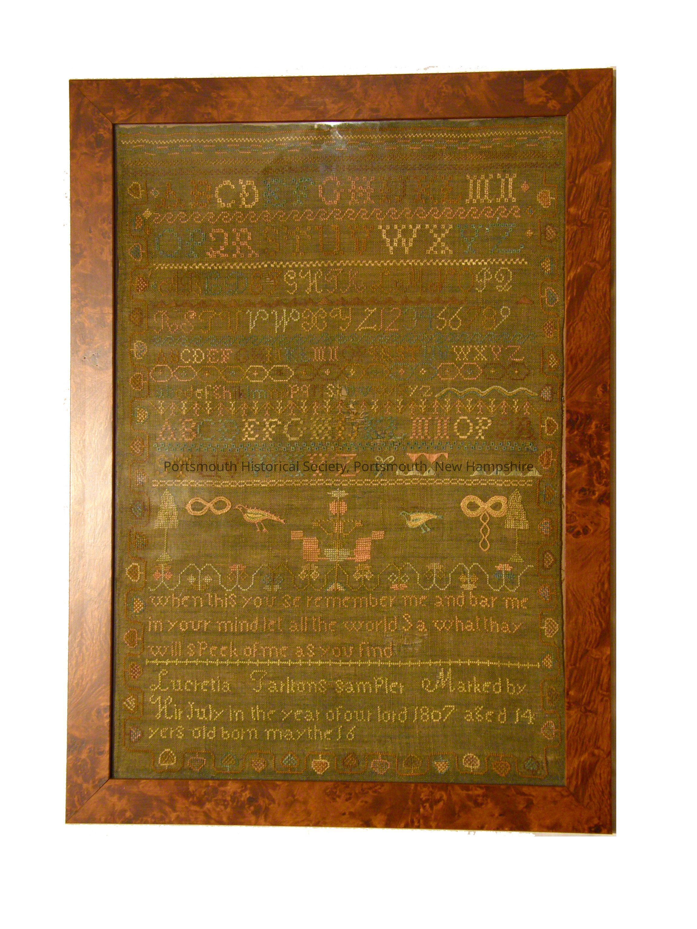 Signed " Lucretia Tarlton's sampler Marked by her July in the year of our Lord 1807, aged 14 yers old may the 16."Collection