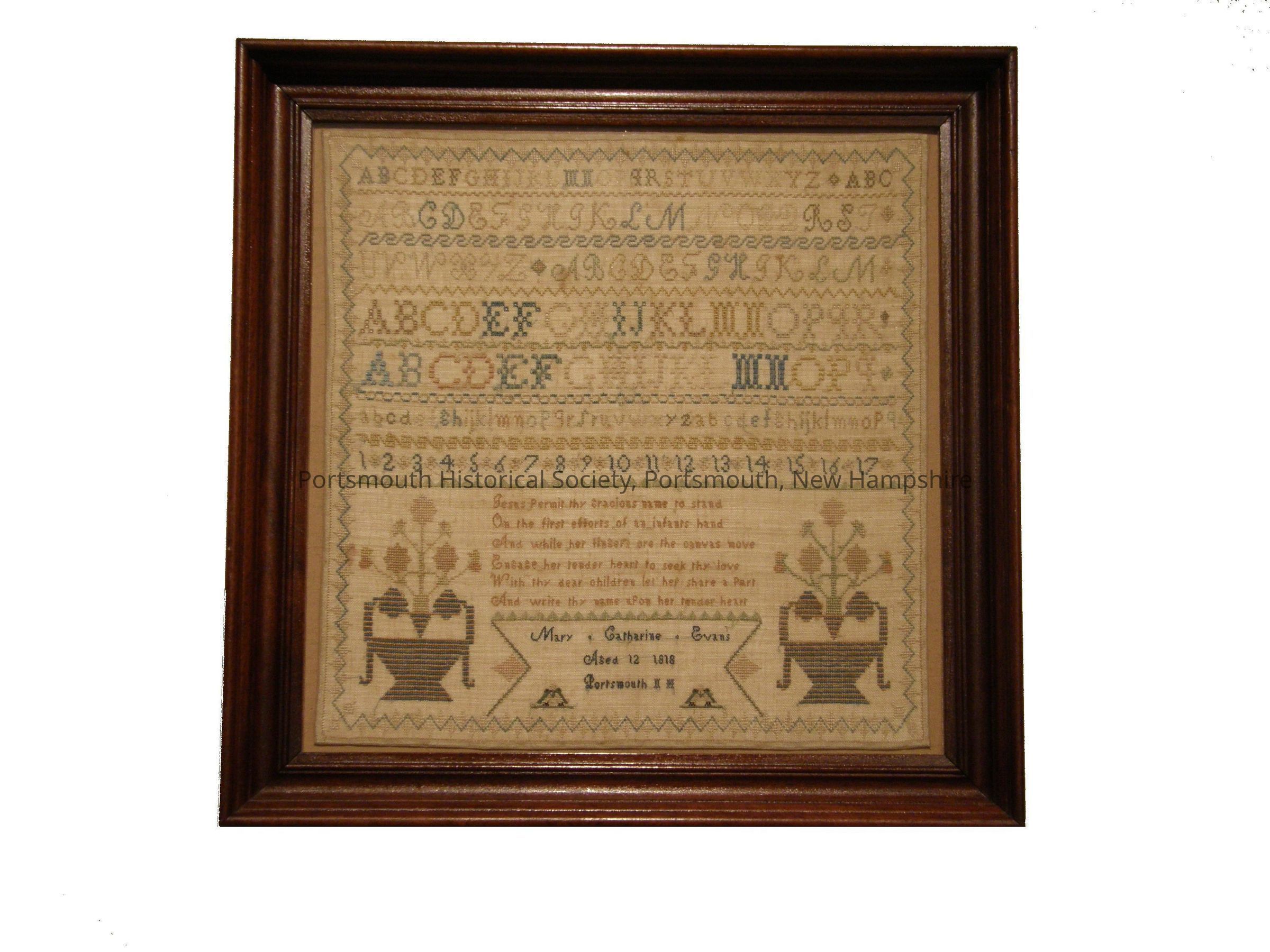 Signed "Mary Catherine Evans, Aged 12, 1818, Portsmouth, NH."Collection