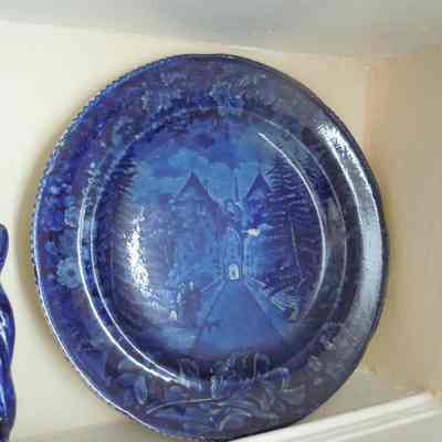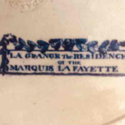 Dark blue Staffordshire plate depicting Lafayette’s residence, La Grange, in France.