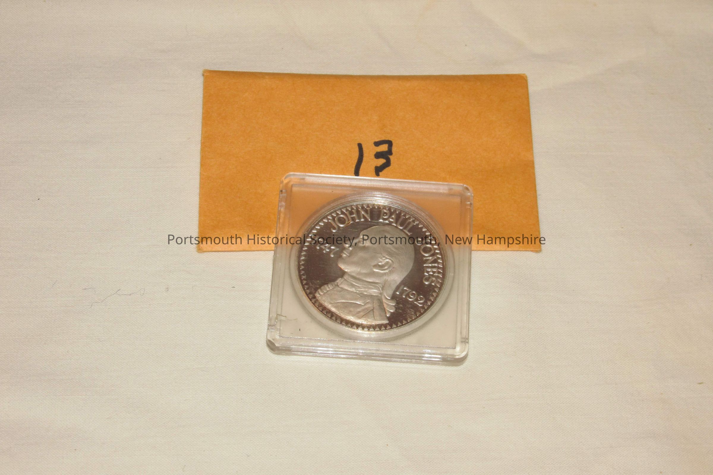Coin/token encased in plastic: "JOHN PAUL JONES / 1747 1792" above profile of JPJ; "I HAVE NOT YET BEGUN TO FIGHT" and image of ship on reverse.Acquisition